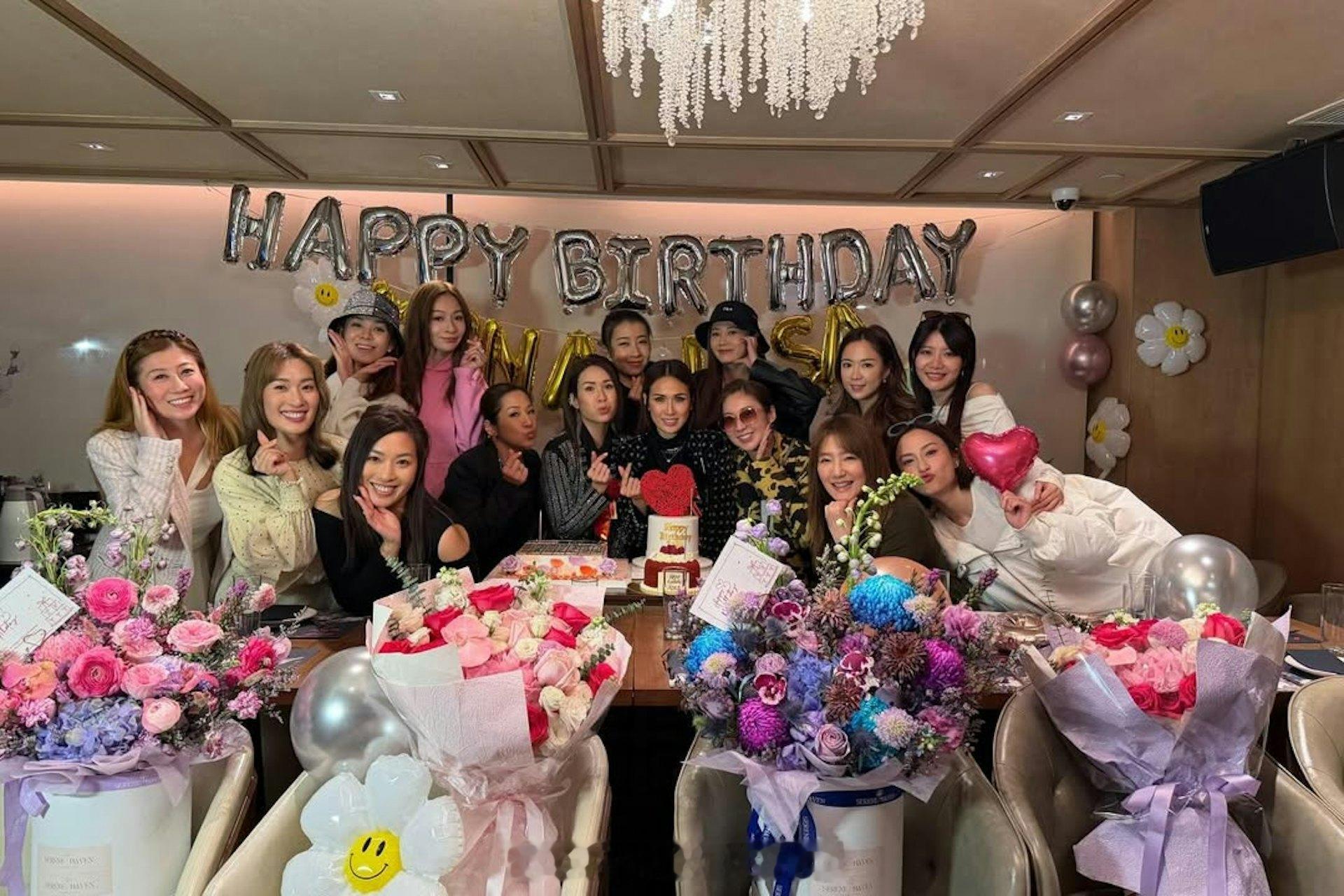 杨明提早到场布置炮制惊喜庄思明日前在社交网分享了多张庆生相片,大家姐庄思敏、好友朱晨丽、关嘉敏、邵初、林钰洧、刘晨芝等到贺,场面热闹。庄思明与孪生姐姐庄思华齐齐以灰黑色装上阵,现场布满了生日气球,收到大量鲜花及精致蛋糕。