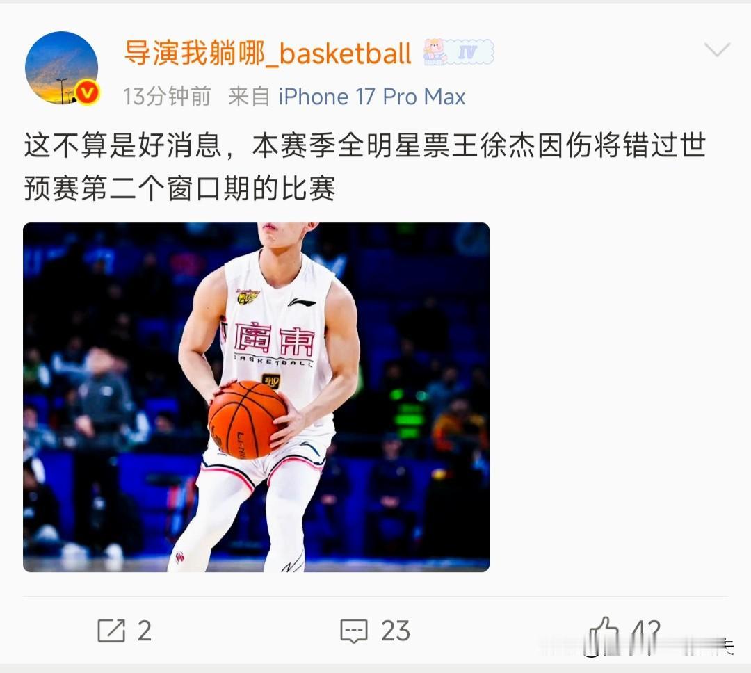 徐杰因伤落选男篮12人名单!恕我直言,有cba总票王徐杰在,中国人能在客场赢的更轻松一些,徐杰不在,有男篮队长胡明轩也能赢,但过程中或许不容易,但还能赢!要知道,徐杰在后场能力堪比日本头号球星河村,打亚洲级别比赛游刃有余,可惜天不由人愿,徐杰在联赛30天内3度崴脚,这次再次因伤落选,说明两件事,第一可能伤势未愈,第二有可能训练中再崴脚