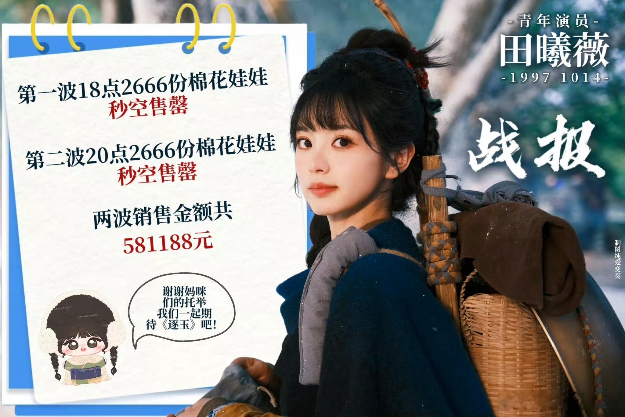 田曦薇粉丝开售棉花娃娃战报:两轮秒罄售空,销售总额58w+!薇丝好牛比