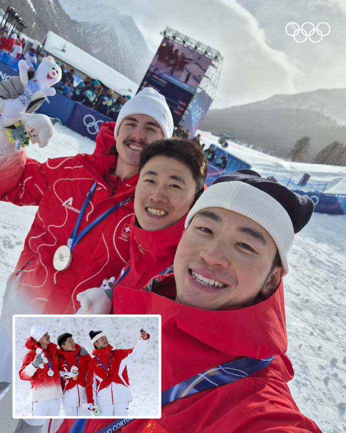 #中国空中技巧队领奖台自拍#米兰冬奥会自由式滑雪空中技巧项目全部结束,发布三张领奖台自拍。中国队奖牌一览:徐梦桃:女子空中技巧 金牌邵琪:女子空中技巧 铜牌王心迪:男子空中技巧 金牌李天马:男子空中技巧 铜牌混合团体:中国组合 李天马 铜牌