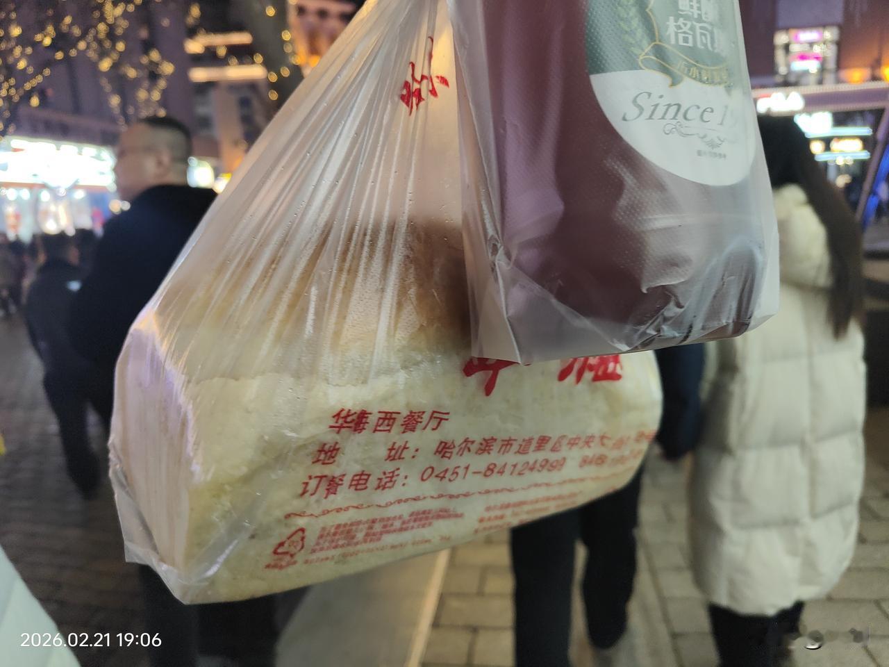 为了吃到哈尔滨特有点槽子面包我只能中午再来一趟中央大街到华梅西餐厅排队,此时的中