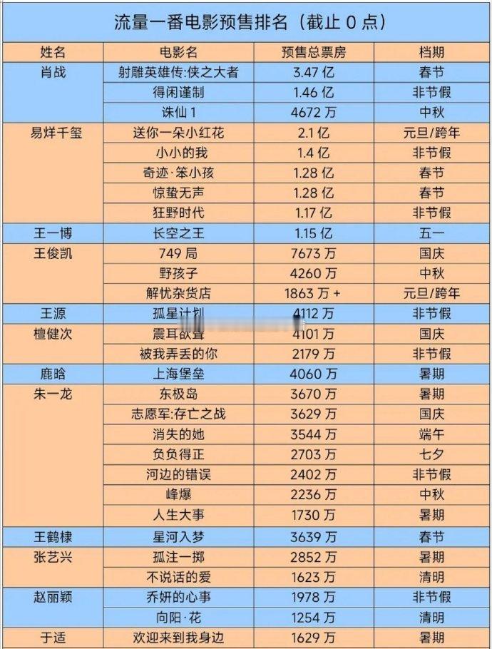 内娱流量花生一番电影预售最新汇总