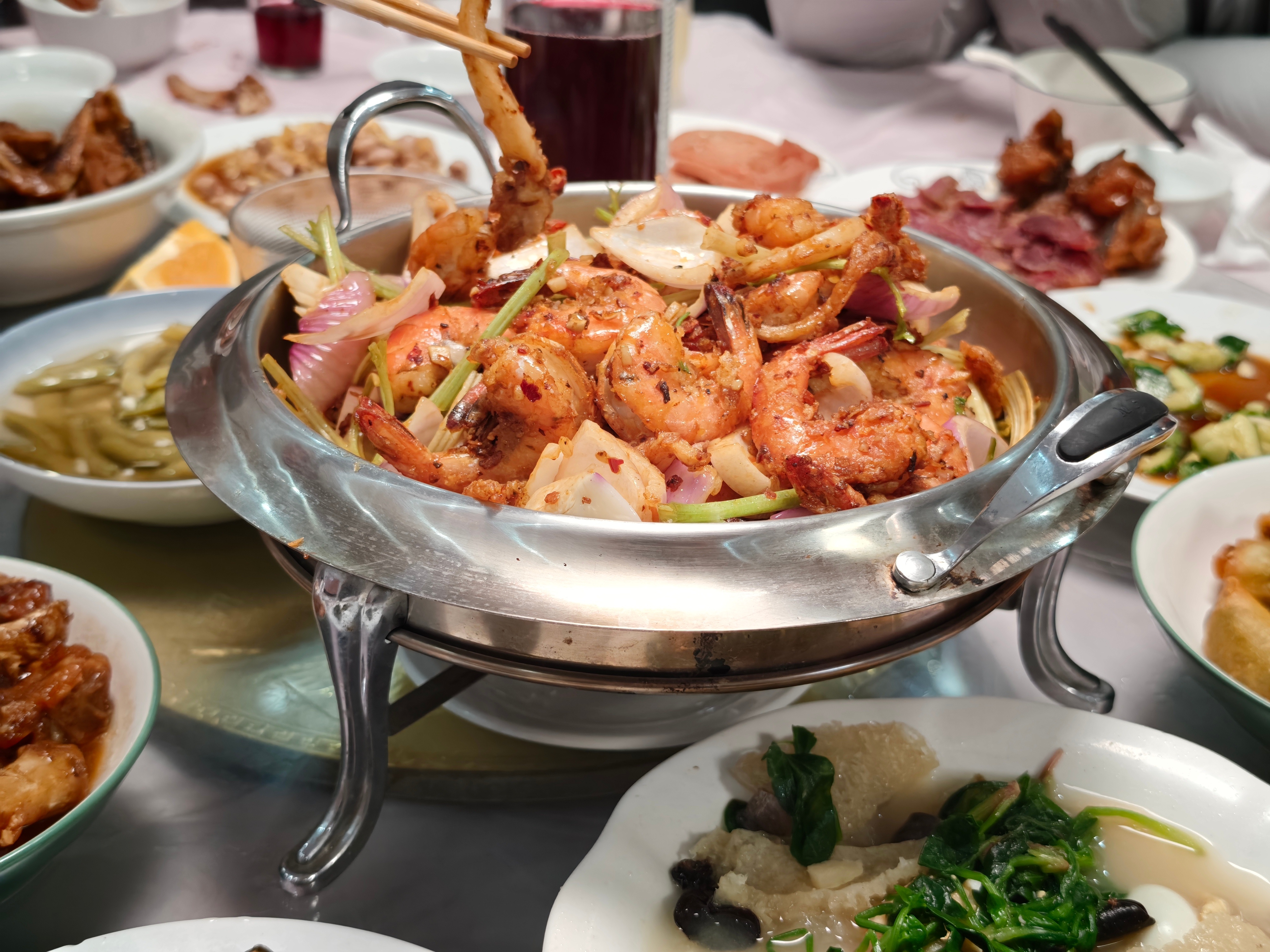 我今年过年吃过最震惊的一个菜大概就是这个干锅大虾,就是我哥喜欢吃这个,我舅妈特地学了,完了还买了一套锅子,甚至还有固体酒精。过年去拜年,这个端上来,完了我哥掏出打火机点起来的时候,那一刻我小脑都萎缩了。
