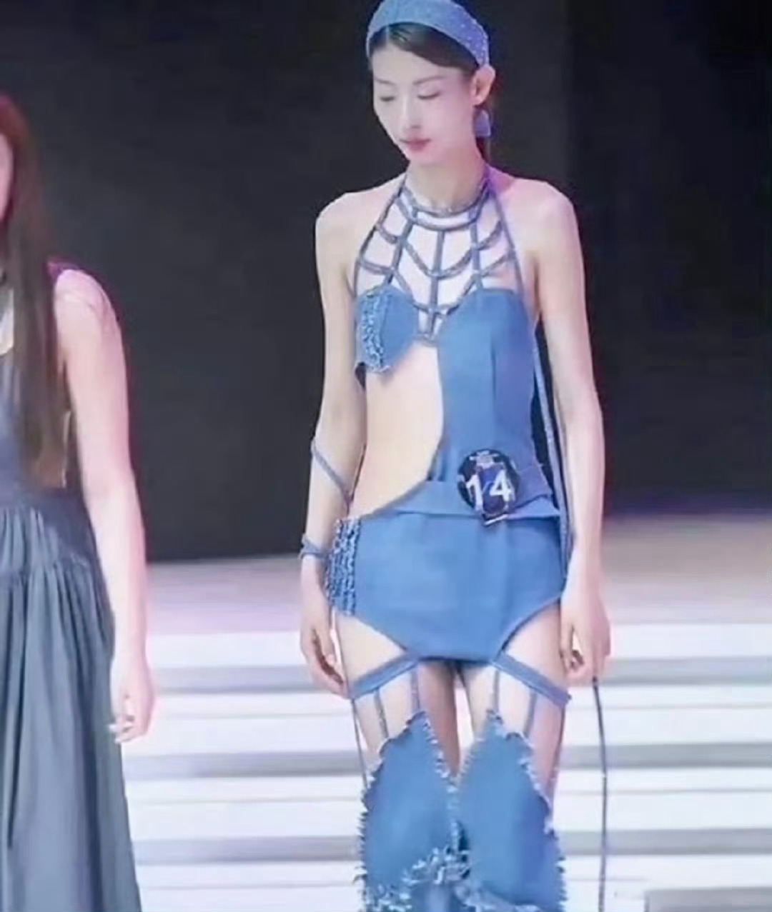 光看苗苗上半身,谁能想到她穿的这条裙子是高开叉的?