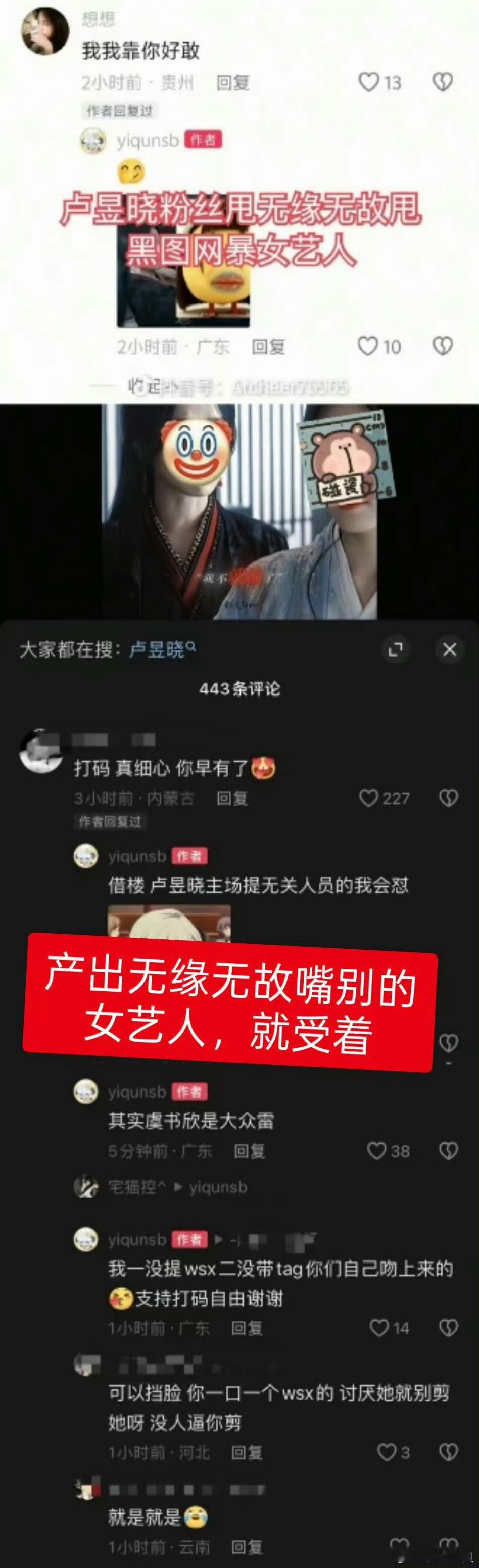卢昱晓鲈鱼粉大过年的又来了是吧不懂得尊重别人