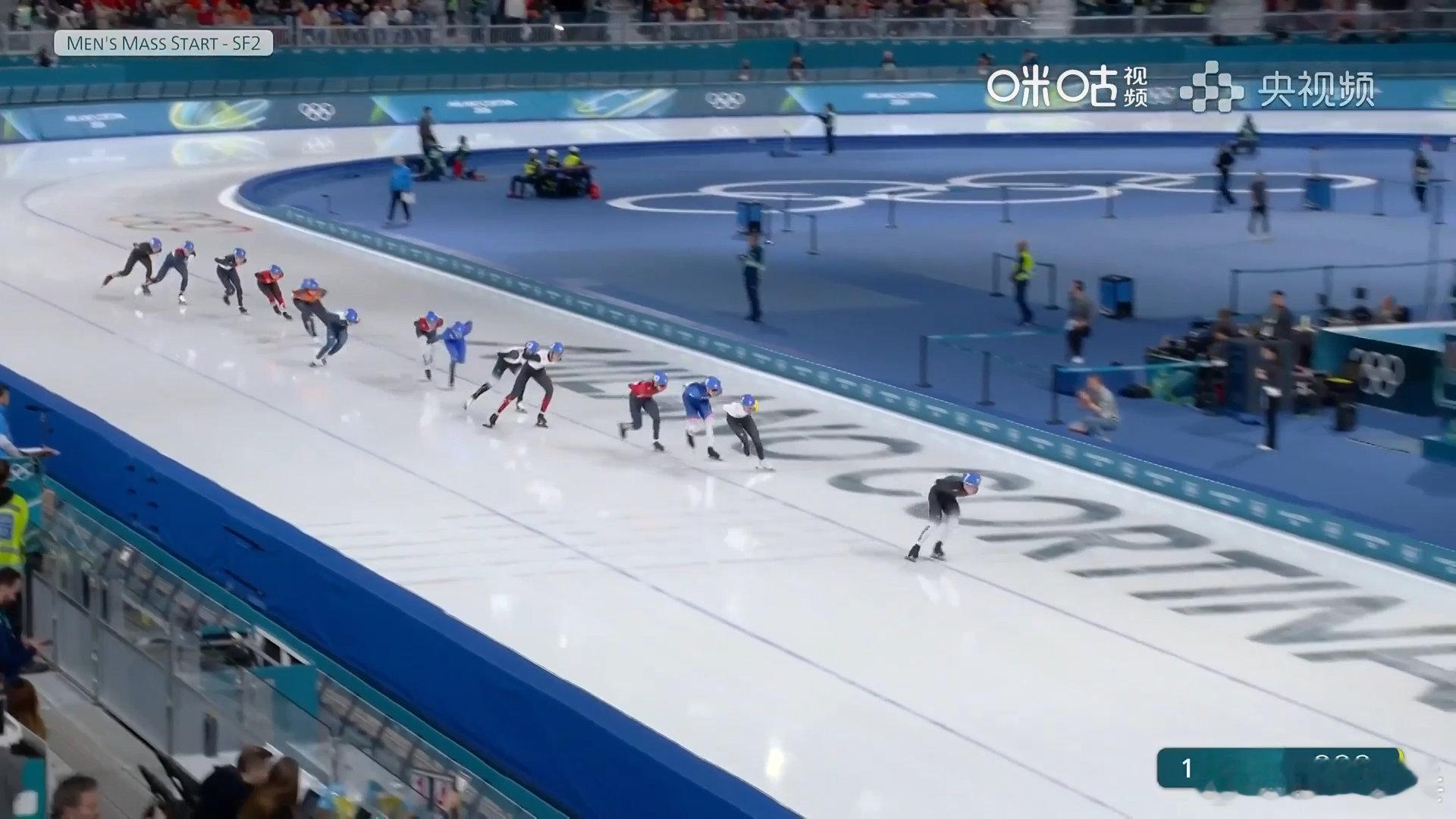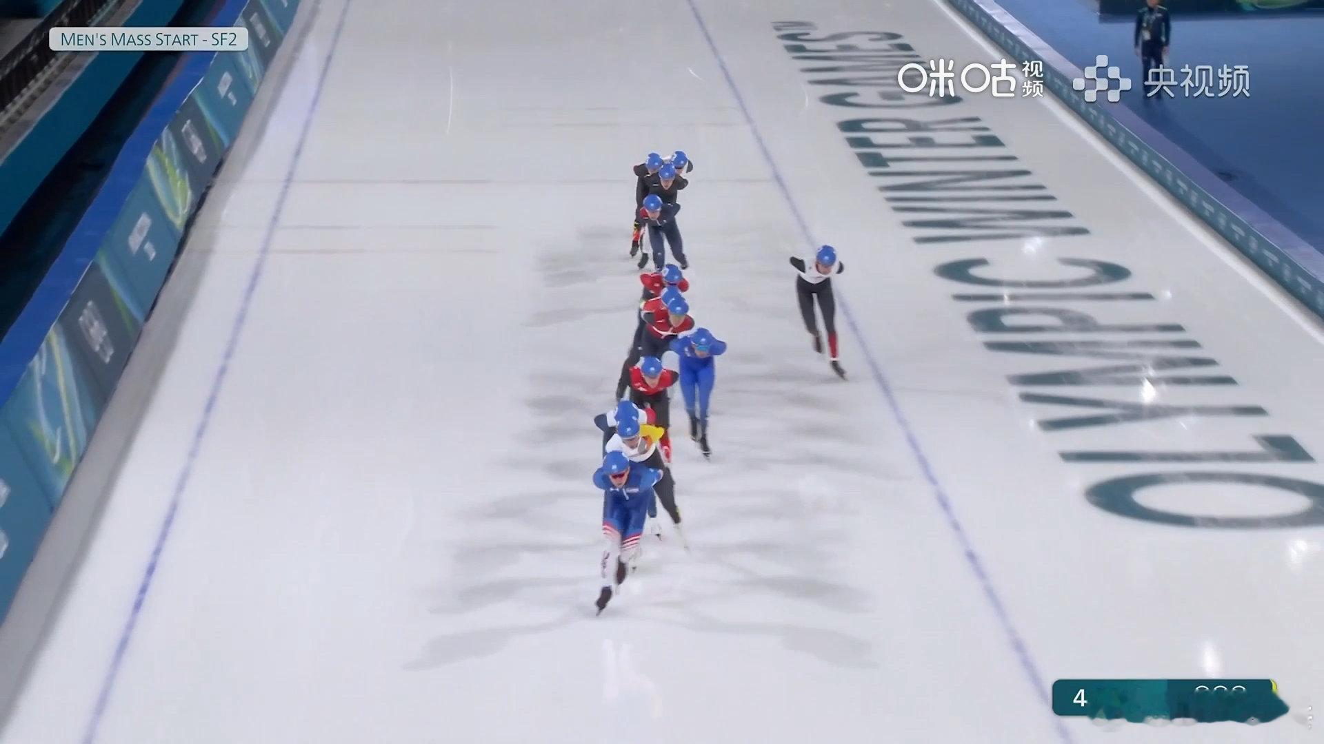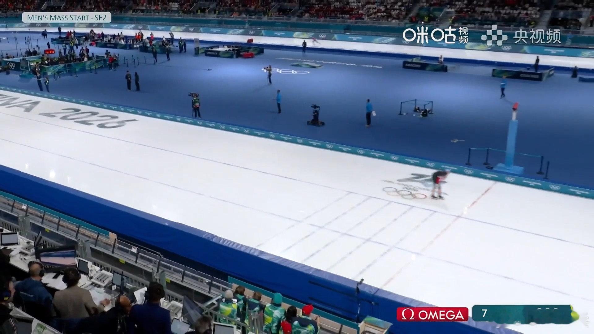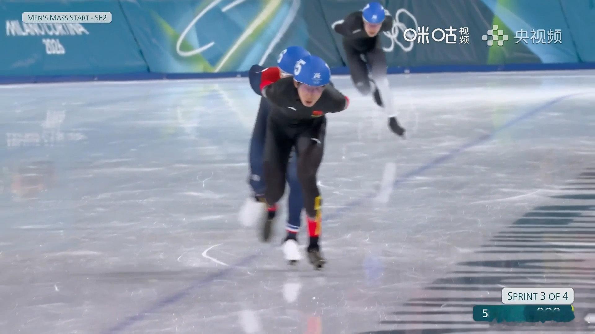 米兰冬奥会速度滑冰男子集体出发半决赛第二组,中国选手获得40积分,位列第二,闯入决赛。