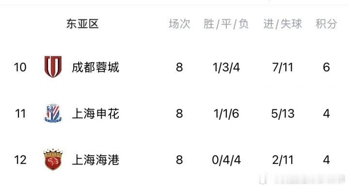 中超四支球队参加25/26赛季亚冠联赛,上海海港、上海申花、成都蓉城在亚冠精英联赛阶段排名最后三位,无缘淘汰赛;北京国安在亚冠2联赛小组赛垫底,同样垫底无缘晋级。