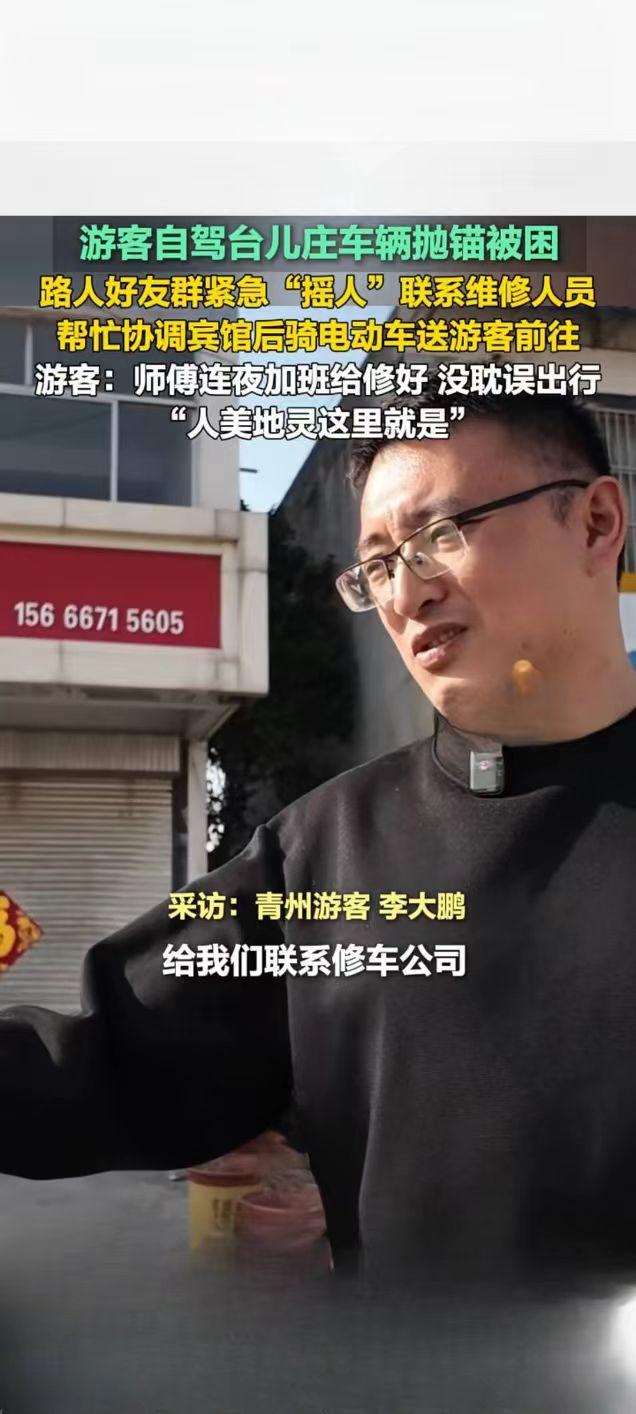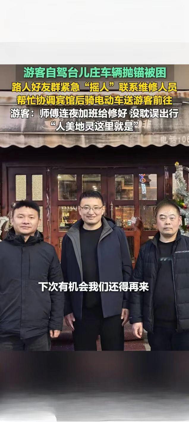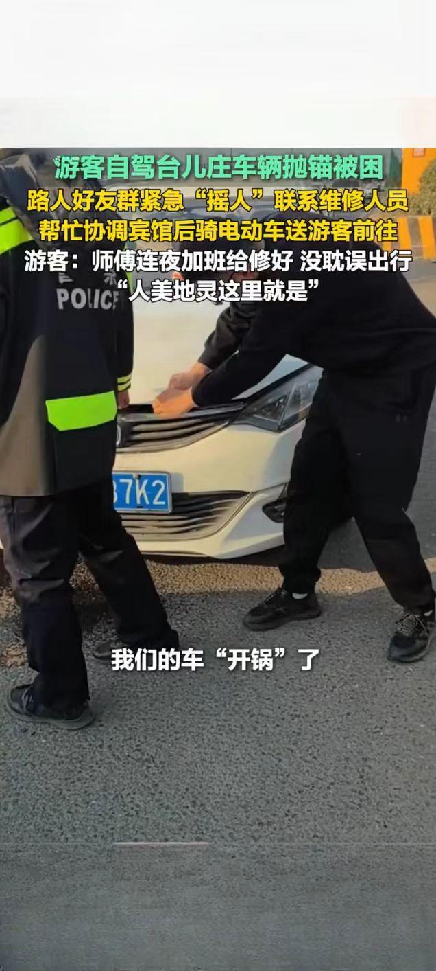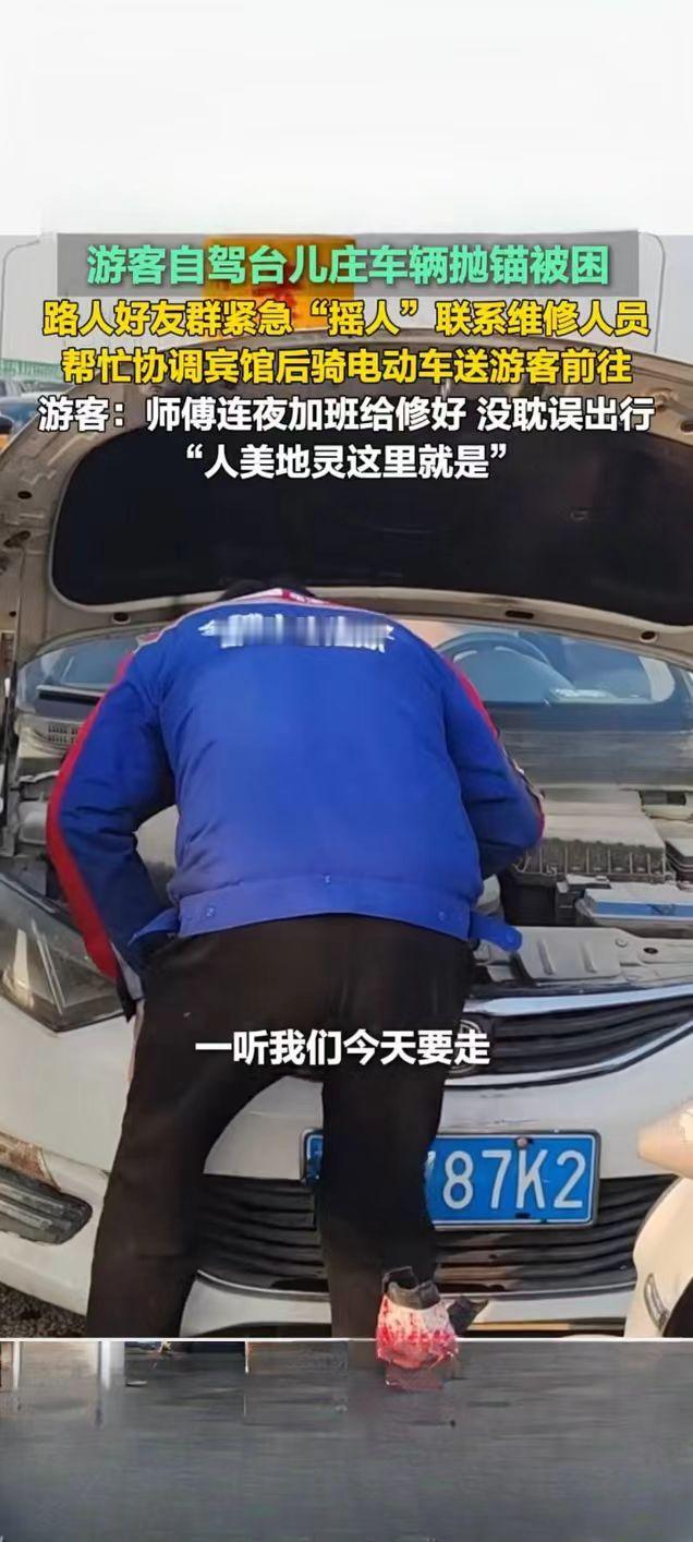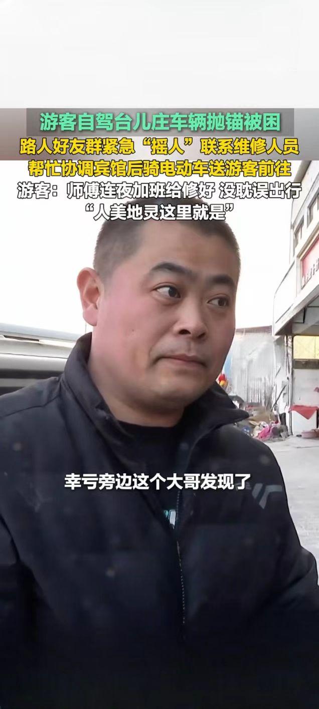 台儿庄游客自驾抛锚遇困 热心路人暖心相助获点赞 2月21日,一则山东枣庄台儿庄游客自驾遇困获路人相助的暖心视频在快手平台引发关注,播放量达2.7万次。视频记录了外地游客自驾前往台儿庄游玩时,车辆突发故障抛锚被困的暖心救援全过程,让网友感受到了台儿庄的城市温度。 据了解,游客自驾行至台儿庄时车辆意外抛锚,身处异地的一行人陷入手足无措的困境。危急时刻,当地热心路人及时伸出援手,发现游客的困难后,第一时间通过好友群紧急“摇人”,多方联络专业维修人员前来抢修。考虑到游客旅途不便,该路人还主动帮忙协调周边宾馆,并骑电动车将游客安全送至住宿地点,全程贴心照料。 为不耽误游客后续行程,维修师傅接到消息后连夜加班抢修,最终顺利将故障车辆修好,游客得以如期开启后续旅程。事后,游客难掩感激之情,直言“师傅连夜加班给修好,没耽误出行,人美地灵这里就是”,朴实的话语满是对台儿庄热心人士的感谢。此次暖心善举,不仅解了游客的燃眉之急,更让台儿庄的温情形象深入人心。旅游台儿庄古城 游观台儿庄古城