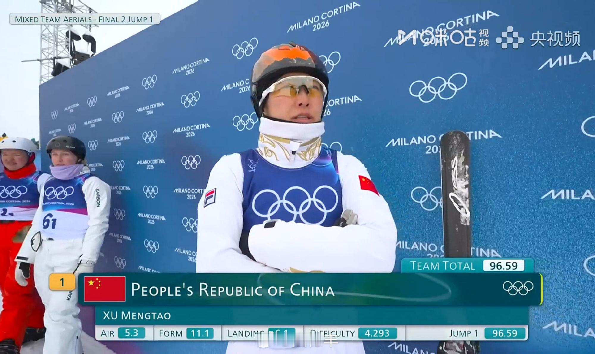 调整过来了,徐梦桃决赛第一跳拿了96.59分。自由式滑雪混合团体空中技巧为中国冬