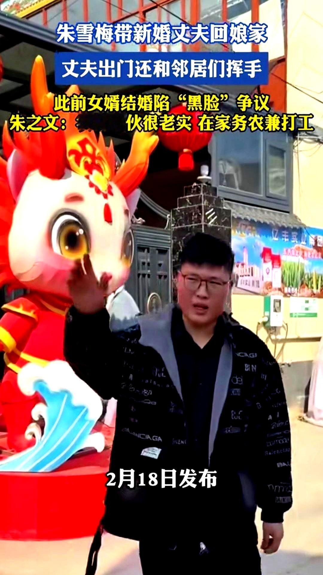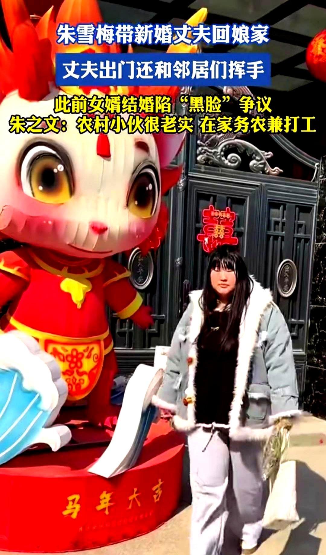 10箱牛奶10箱火腿,直接把大衣哥家门堵了。 新女婿张海洋,话不多,下车挥了挥手就往屋里钻。村民还嘀咕呢,怎么空着手?结果后备箱一开,亲戚们上手一搬,好家伙,特仑苏、双汇火腿成箱地往外拿,两辆车都掏空了,客厅过道堆得下不去脚。 这天是大年初二,朱雪梅回门。村里三百多部手机堵在门口,水泄不通。新郎官看着一脸严肃,有人说他“黑脸”,其实就是紧张,不习惯这阵仗。大衣嫂穿个黑大衣红围巾,在门口等着,脸上都笑开花了。 朱之文当初就一句“对我闺女好点”,这算不算最好的回答?