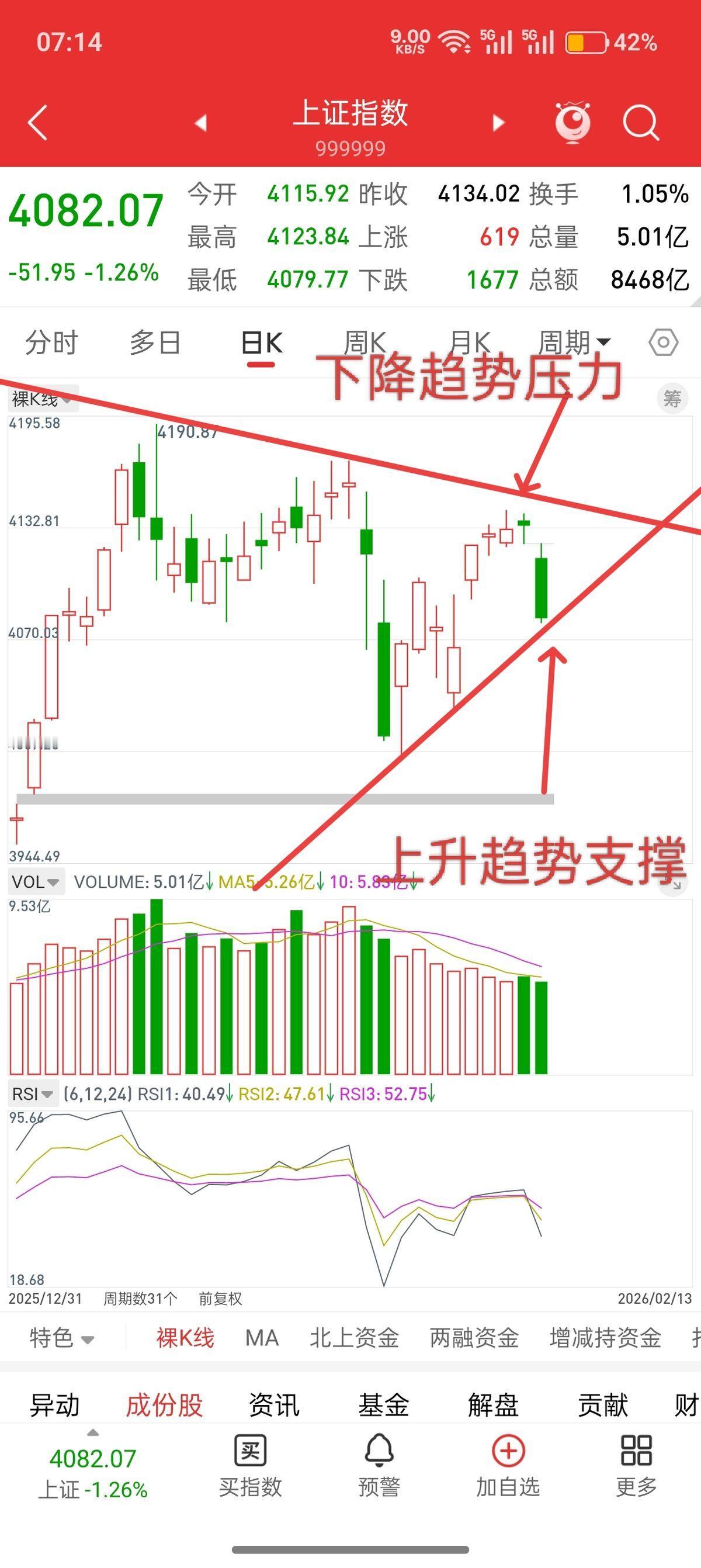 富时A50涨了200点。 有人把这数字换算了一下,说节后大盘能高开二三十点。文章里画着线,4082点的收盘价,上面是4142的压力线,下面是4079的支撑线。突破回踩,图形漂亮。 去年九月到今年一月,这人说自己抓了不少大肉票。节前收盘刚过,他就把点位预测和选股思路都摆了出来。看到这些数字和线条,心里好像就踏实了一点。 你盯着那个可能摸到的4100点。 就像在陌生的路口,有人递过来一张画好的地图。每条路都标得清清楚楚,哪里转弯,哪里是终点。你接过来,脚步就不自觉地跟着走了。 可那地图用的是去年的墨水。 支撑线画在纸上,压力线悬在头顶。真正的市场在开盘那一秒才会呼吸。所有的预测都在赌那个呼吸的节奏,和你手里那张纸是否刚好对上。 我们总想抓住一点确定的东西。 哪怕那确定只是别人嘴里的一串数字,只是屏幕上一根虚拟的线。它压住的不是行情,是你心里那点晃来晃去的慌。 分不清了。 哪句是别人的分析,哪句成了你自己的判断。听到“稳了”的时候,究竟是市场稳了,还是你终于不用自己面对那片巨大的、嗡嗡作响的不确定了。