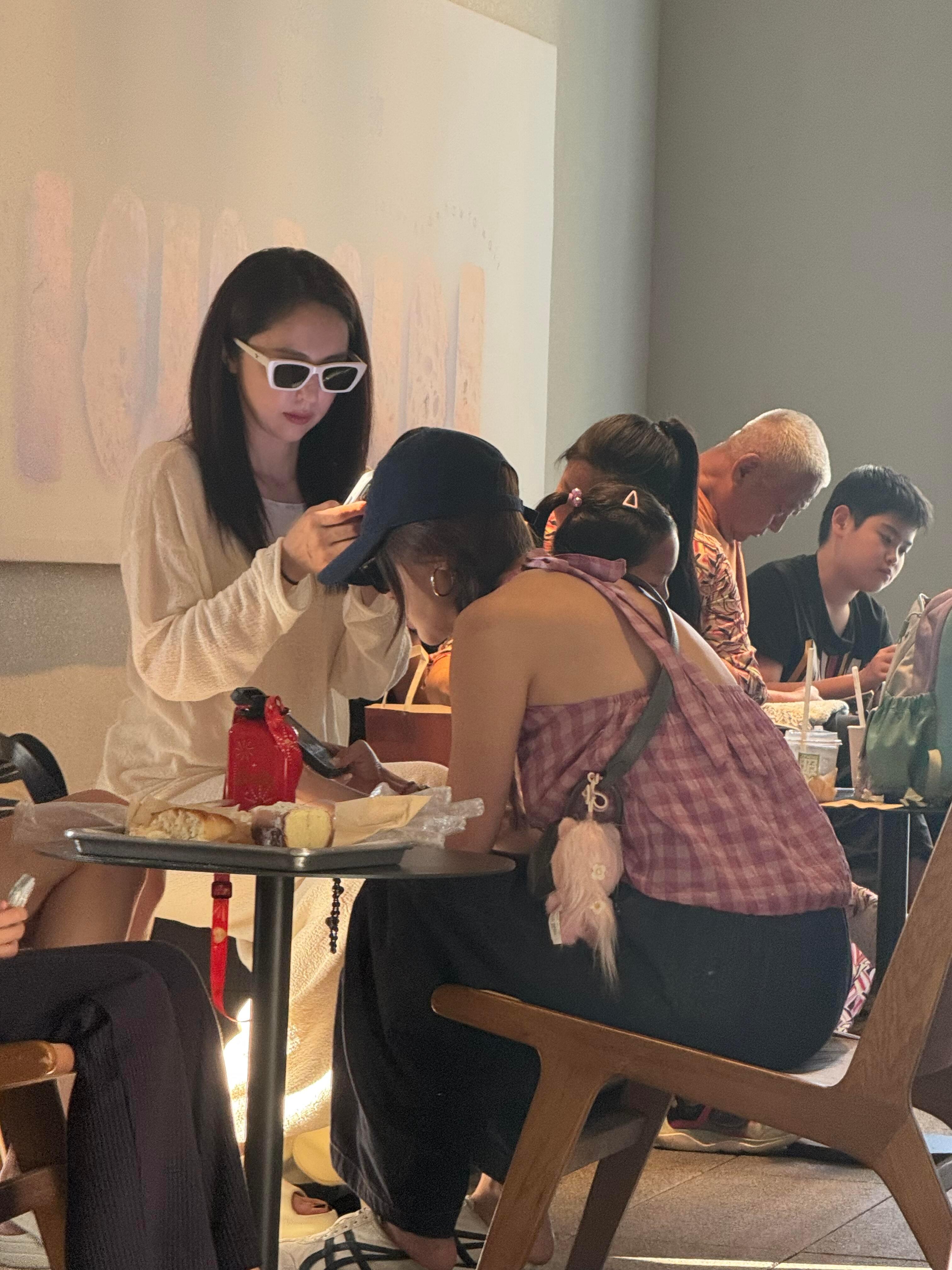 张天爱跟素人合影,胯真的好宽,大宅院似的