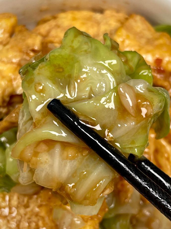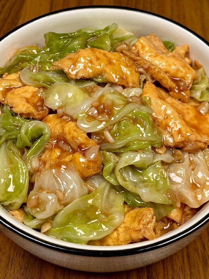 这位博主她自己是吃肉的。她吃青椒肉丝、红烧大排、火腿肠当零食,肉下肚了,嘲讽把它