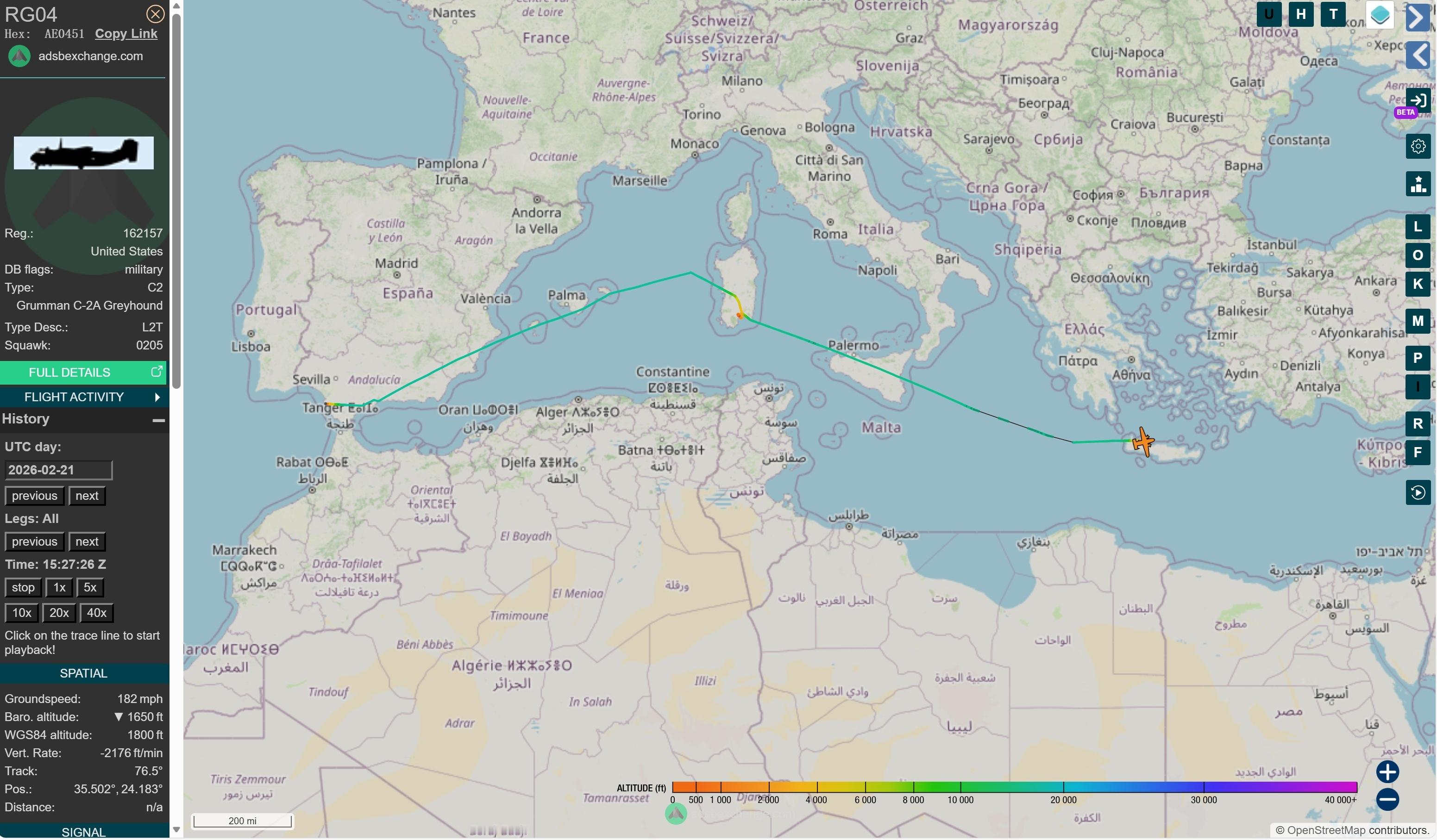 2月21号,美国海军福特号航母(CVN-78)的两架C-2A同时从罗塔经撒丁岛飞抵希腊的克里特岛,这表明,福特号大概率将直接前往东地中海,预计在后天抵达。美伊冲突美国航母动态