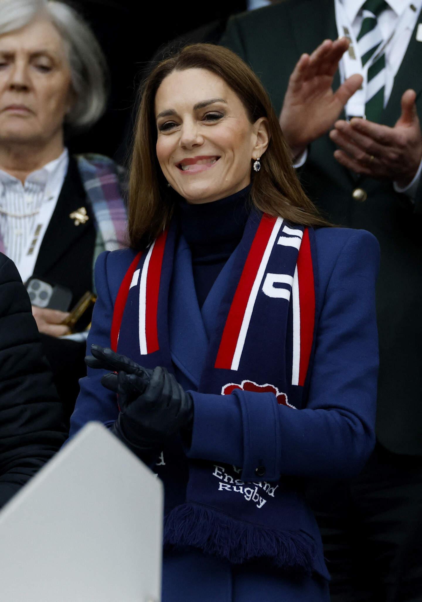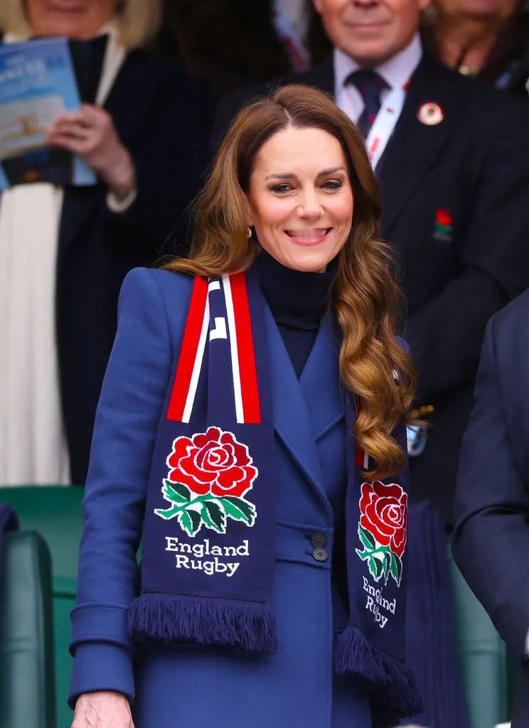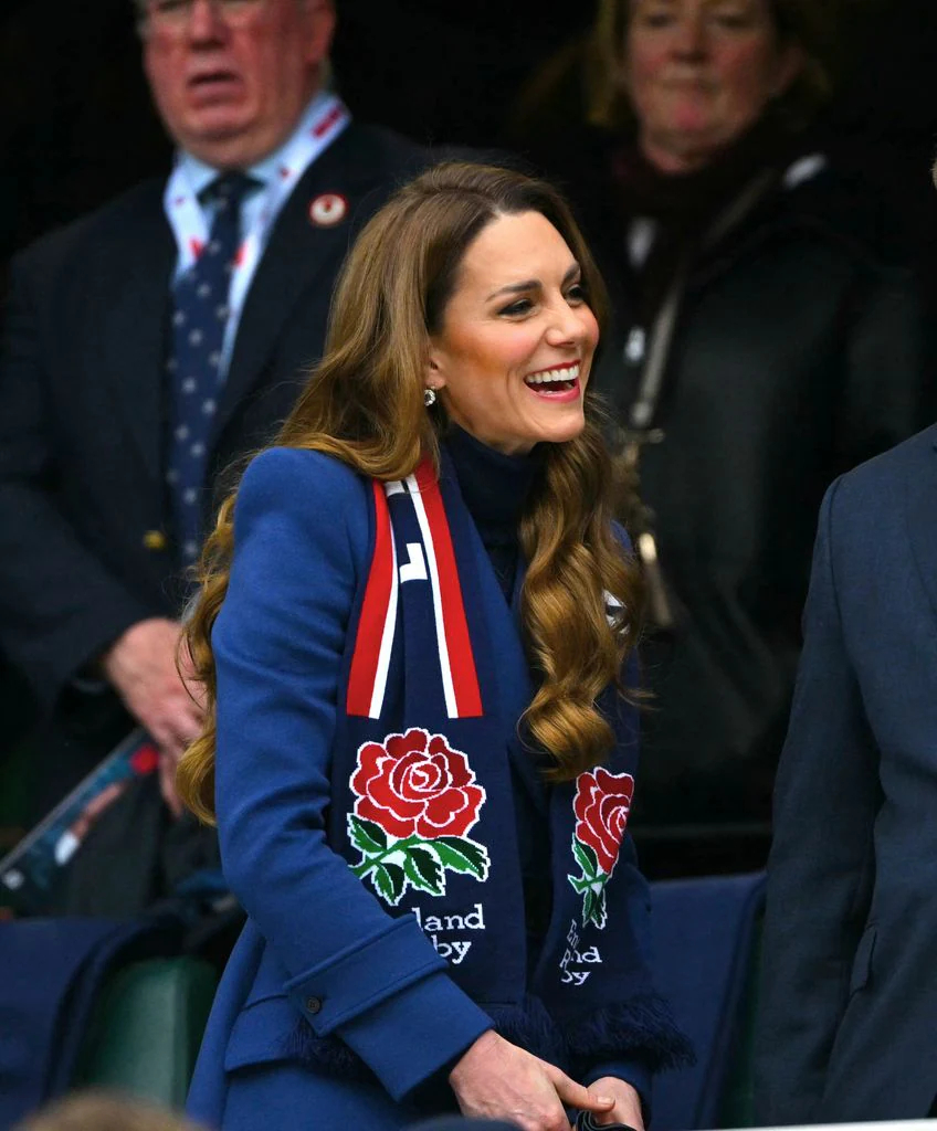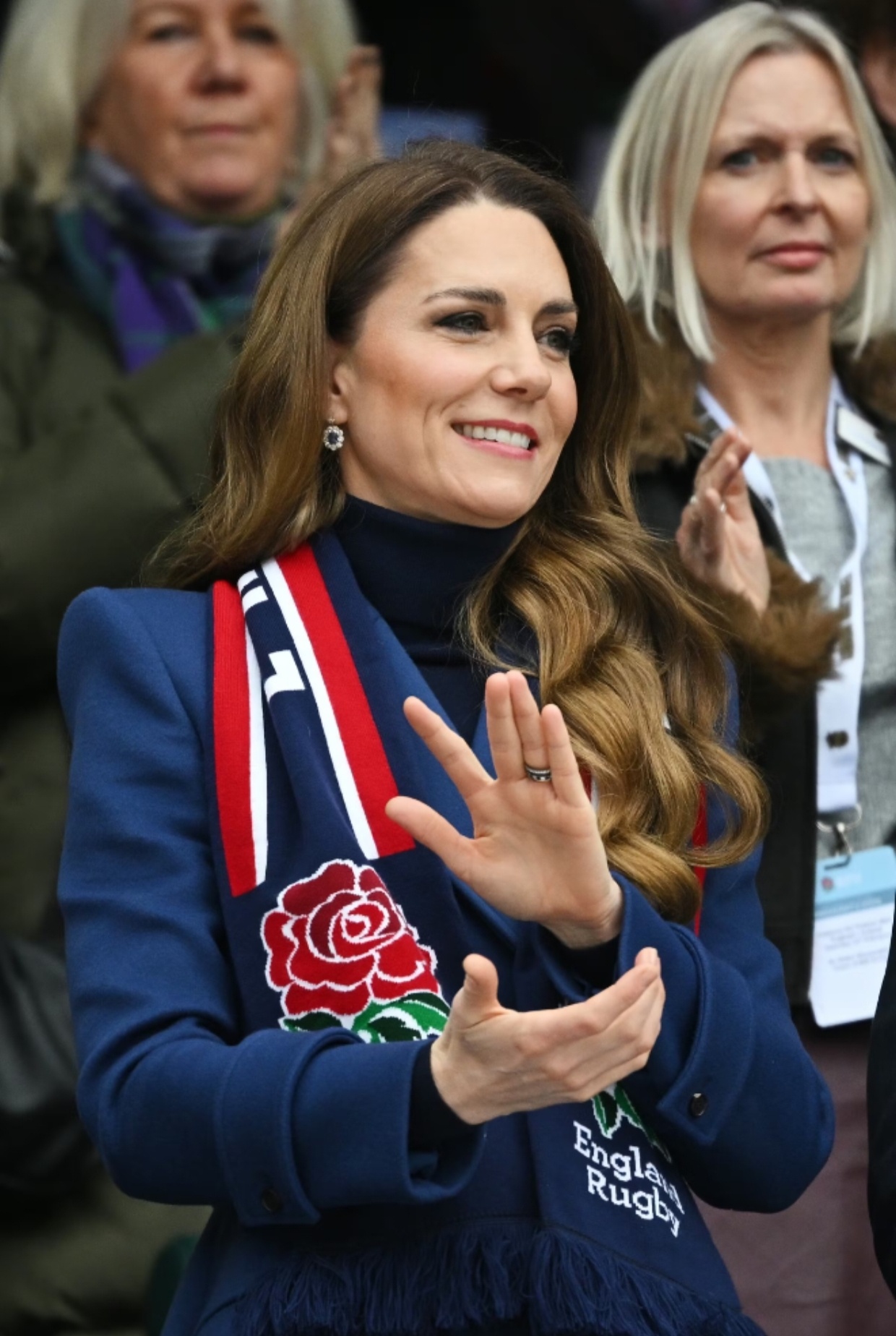 2月21日,作为英格兰橄榄球联盟的皇家赞助人,凯特于特威肯汉姆体育场观看英格兰VS爱尔兰的六国橄揽球比赛~