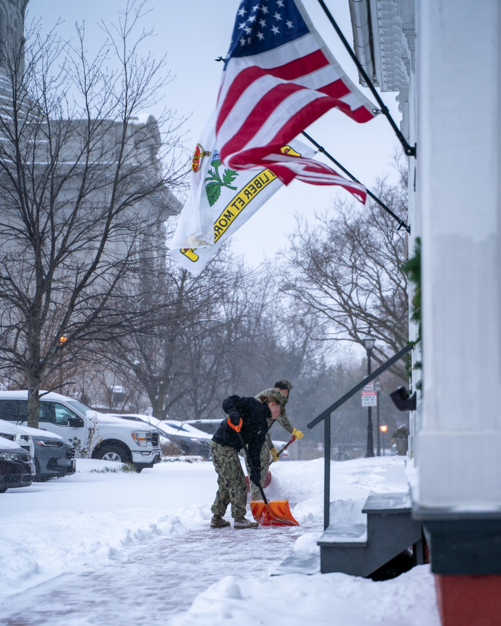 海军学院志愿者为安纳波利斯市有需要的市民铲雪