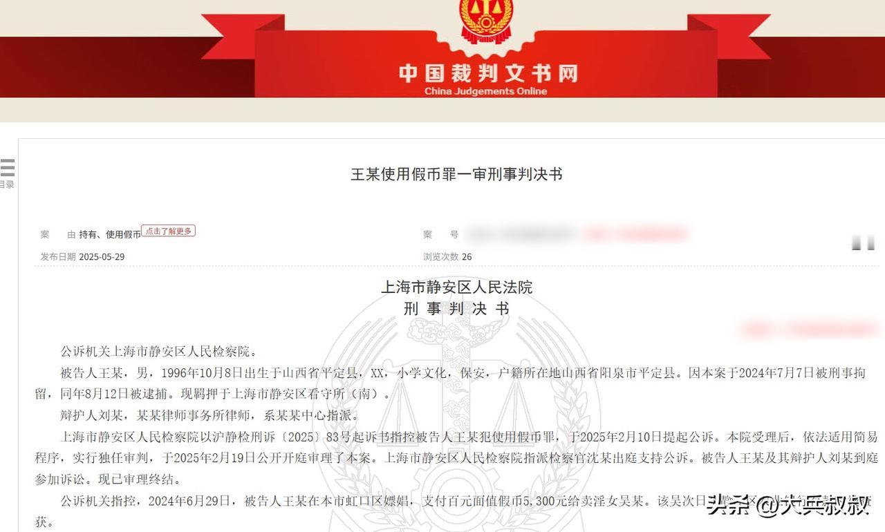 上海,一男子约一女子到酒店进行有偿亲密行为,因男子一次性给了女子5300元,所以女子也特别卖力,完事后,女子带着钱去银行存款,不料被银行发现都是假币,最终,男子却栽了大跟头。不仅入狱服刑,还罚了2万元。 据悉,男子王某是一名90后,老家在山西,因为学历特别低只有小学文化,所以,来到上海工作后,就找了一份小区保安的工作。 因为工作只有白班和夜班,所以王某的个人休闲时间很少,不过作为一名男性,王某还是有基本需求的。 2024年6月29日这天,王某来到一处出租屋,和女子吴某打成了有偿发生亲密关系的合意,王某给了吴某5300元,因为吴某很少能一次收到这么多现金,所以,吴某也是很卖力的服务。 完事后,王某穿好了衣服离开了出租屋,因为太精疲力尽,所以,吴某休息了一天后,在第二天来到了银行,打算把这5300元存进去。 结果柜员在收到这笔钱时,发现这笔钱全部都是假币,而且没有一张是真的,柜员当即报了警。 民警来现场后见吴某带回,吴某不得已承认了是自己给王某服务挣的钱,于是,警方立马联系上了王某,王某得知事情败露后,便主动来到了警局坦白了这件事情,王某表示,自己知道这些是假币。 事情到这里就很明朗了,王某拿着假币找吴某服务,吴某在收到钱之后去银行发现这些都是假的,于是王某被刑拘了。 那么,王某使用假币的行为,在法律上构成什么罪? 实际上,王某不仅有这么多假币,而且还使用了,所谓的使用,是指将伪造的货币冒充真币而予以流通的行为。至于使用的方法,可以多种多样。如有的用以购买商品,有的用之偿还债务,有的借予他人,甚至有的从事非法行业等,具体使用方法不影响本罪的行为方式特征。 因此,王某使用这些假币用于有偿亲密行为,也属于使用的一种形式,因此,王某的行为构成使用假币罪。 根据刑法之规定,犯持有、使用假币罪的,处三年以下有期徒刑或者拘役,并处或者单处一万元以上十万元以下罚金;数额巨大的。处三年以上十年以下有期徒刑,并处二万元以上二十万元以下罚金;数额特别巨大的,处十年以上有期徒刑,并处五万元以上五十万元以下罚金或者没收财产。 而“数额巨大”和“数额特别巨大”的标准,即“总面值3000元以上或者币量300张以上”可以视为“数额巨大”,“总面值10万元以上或者币量10000张以上”可以视为“数额特别巨大”。 王某使用的数量是520张,已经超过了300张,因此要被处以刑罚,最终,法院以使用假币罪判处王某有期徒刑8个月,并处以2万的罚金。 而这5300元的假币,最终也被依法没收处理了。 当然,对于吴某来说,也并非一点事都没有,因为吴某和王某达成了违法交易,虽然钱财是假的,但是,钱财是假的并非一点价值都没有,因此,对于吴某来说,也将会面临相应的行政处罚,按照治安管理处罚法的规定,吴某会面临最高15日行政拘留以及最高5000元罚款的处罚。 对此,你对本案有什么看法? —————————— 关注我,带你评析法律热点,关注冷暖人生。 文章原创,抄袭必究 头号创作者激励计划 (注:本案来源于裁判文书网,案件稍做改编,非发生在当前,仅做普法交流)