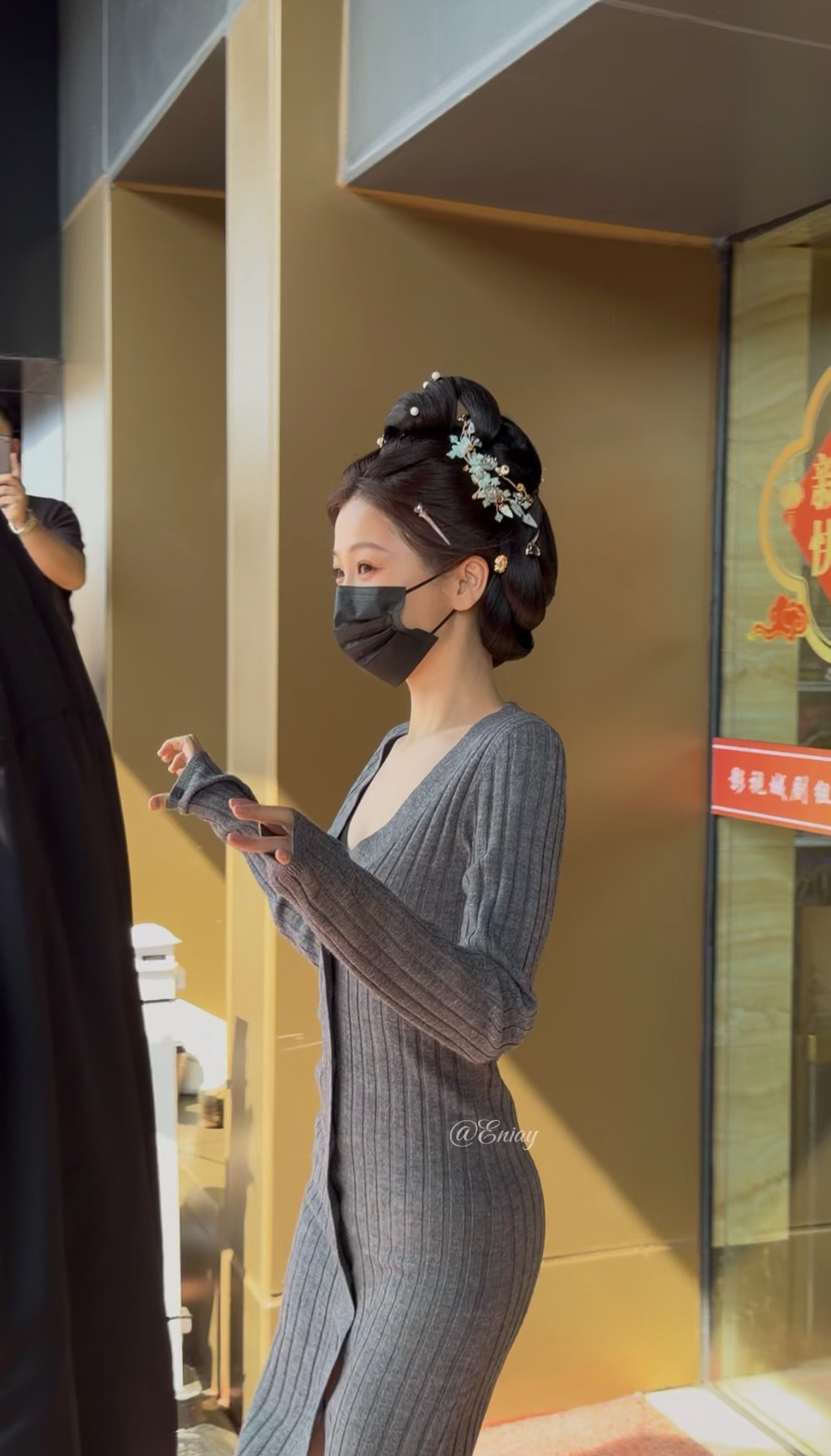 张天爱跟素人合影,胯真的好宽,大宅院似的
