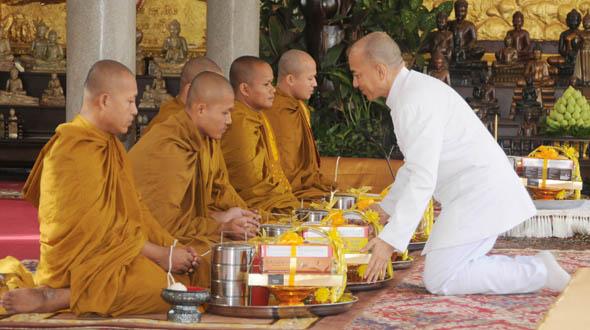 西哈莫尼国王生活自律,不近女色,就是比一般人显年轻。看看西哈莫尼国王2014年12月20日纪念西哈努克太皇的相片,那时他老人家已经61岁,外表却像白净清秀的帅小伙,一脸阳光,身体矫健,没有半点老态。 可是为什么自从今年2月6日传出西哈莫尼国王生病的消息,至今没有再发布消息了?国王的病情如何了? 相片来源:西哈莫尼国王网站!