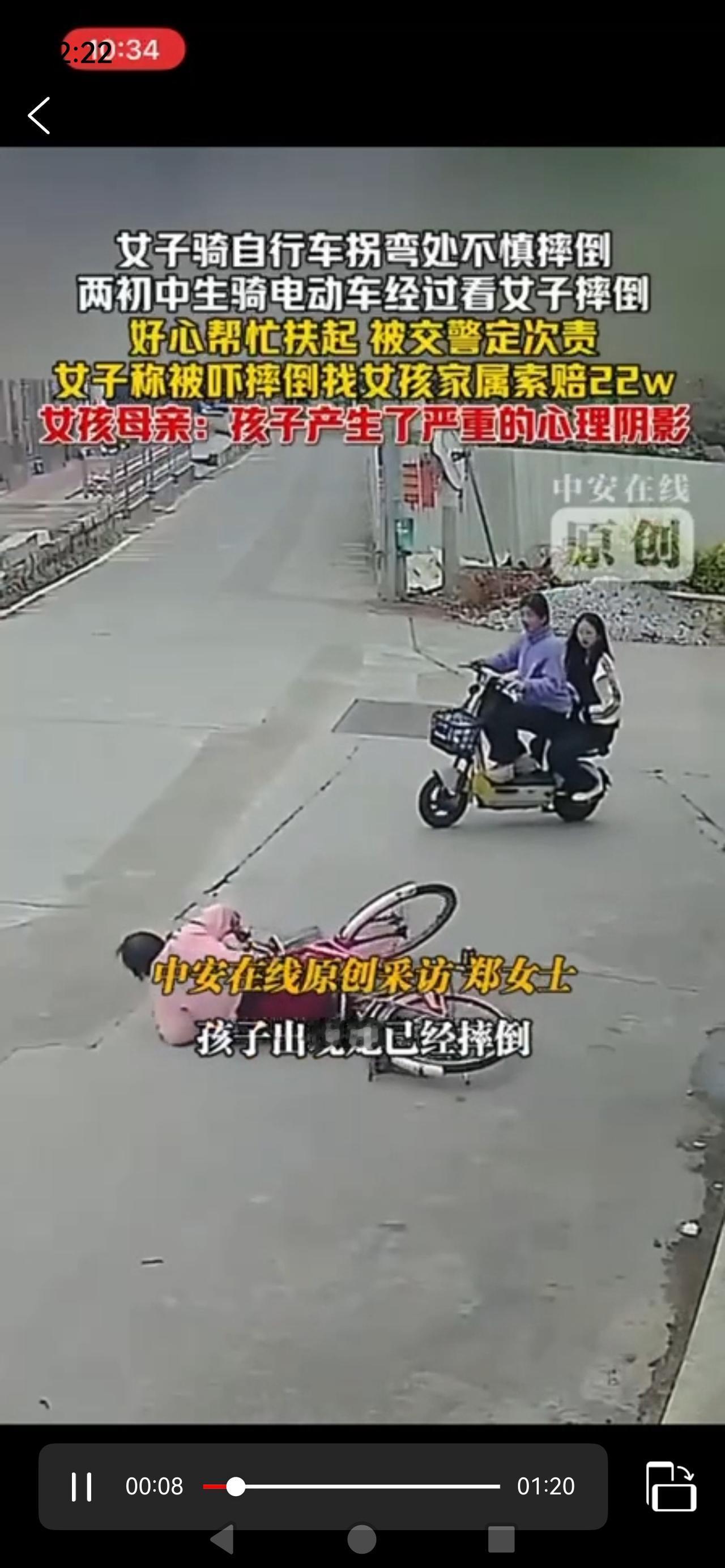 《扶老人反被索赔22万!监控视频让真相大白,网友:必须严惩讹诈者》 家人们,你们敢信吗?两个初中女生,好心扶起摔倒的老太太,结果被对方张口索赔22万! 监控拍得清清楚楚,老人是自己避让车辆摔倒,两个孩子根本没碰到她。可家属一口咬定,就是被孩子吓到才摔倒的,拿着认定书不依不饶,直接要22万赔偿。 两个十几岁的孩子,因为一次本能的善良,整天担惊受怕,活在愧疚和恐惧里。家长更是心力交瘁,明明没做错事,却要被天价索赔压得喘不过气。 这件事最扎心的地方,就是它再一次把那个扎心问题摆在我们面前:老人摔倒,到底扶不扶? 我们从小教育孩子要善良、要乐于助人,可现实却给善良一记耳光。如果连孩子的好心都要被刁难、被讹诈,那以后谁还敢教孩子做好人?谁还敢在别人需要时伸出手? 法律可以讲责任,但人心要讲良心。最可怕的不是老人摔倒,而是人心凉了。 好在最后对方撤诉,孩子终于可以回归正常生活,不用再为好心买单。 真的越想越气!孩子好心帮扶,何错之有?没有碰撞、没有过错,就因为一句“被吓到”,就要背负22万的重担,这不是讲道理,这是消耗整个社会的善意。 我真的怕,以后再有人遇到困难,大家第一反应不是帮忙,而是先担心会不会被赖上。 庆幸结局是好的,也希望这件事能告诉所有人:别让好人寒心,别让善良受伤。守住良心,比什么都重要。扶起老人被讹 扶老被讹案
