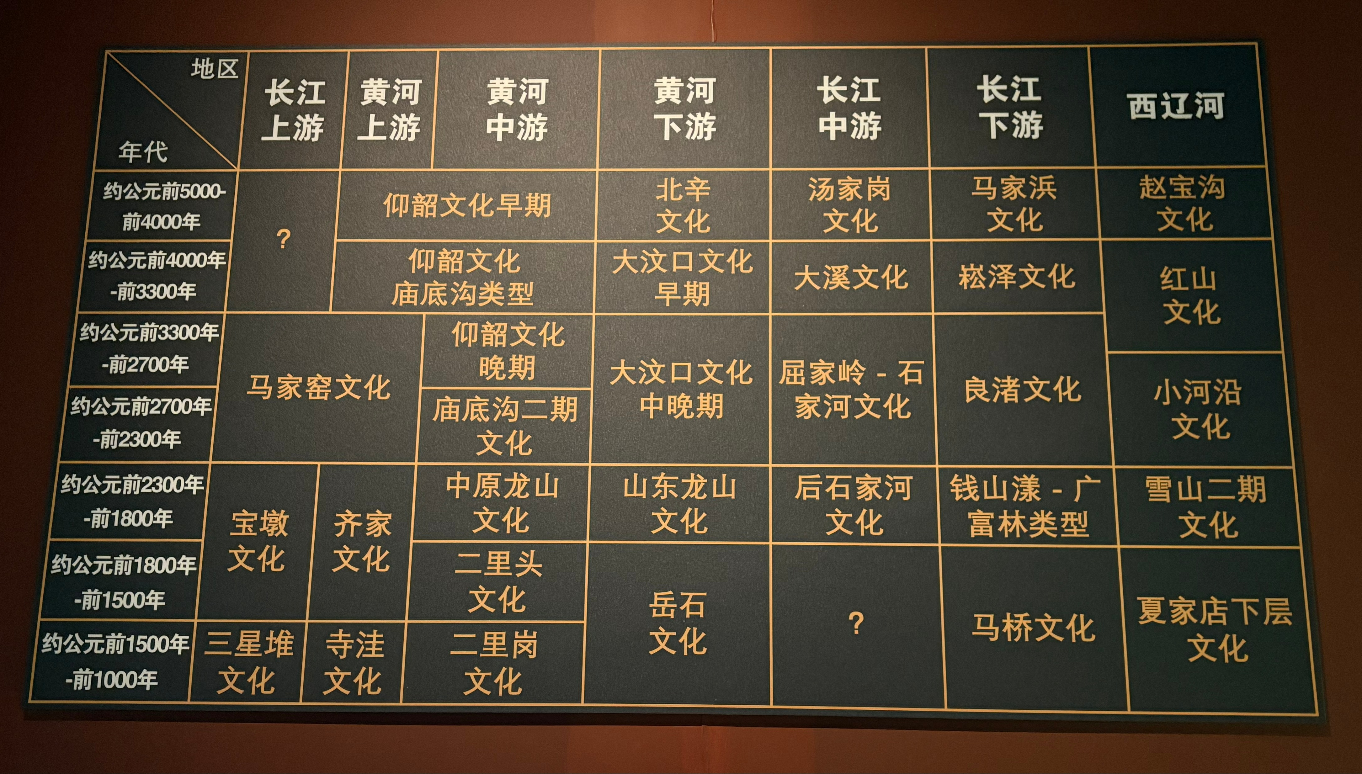 中国考古博物馆把新石器时代到青铜时代早期的中国古文化类型和地域做了个总结的表。一