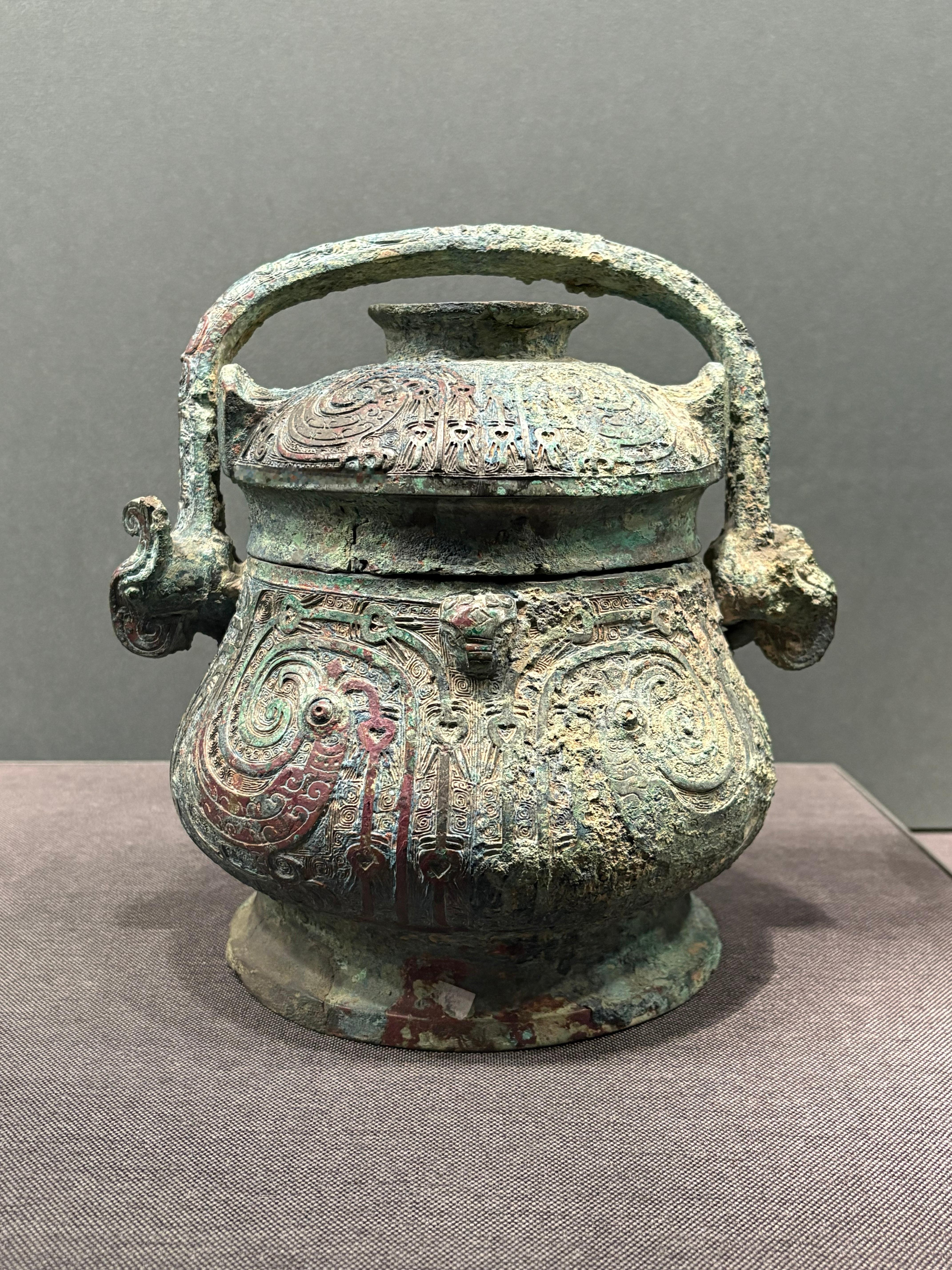 中国考古博物馆收藏的北京房山琉璃河西周墓地出土的西周早期:华丽凤鸟纹提梁卣