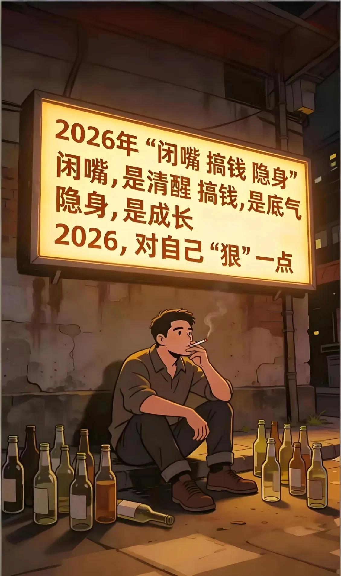 2025年“痛过 悟过 翻篇” 2026年“闭嘴 搞钱 隐身” 闲嘴,是清醒; 搞钱,是底气; 隐身,是成长! 2026,对自己“狠”一点! ㊗️马上有喜,马上有钱,马上有闲!
