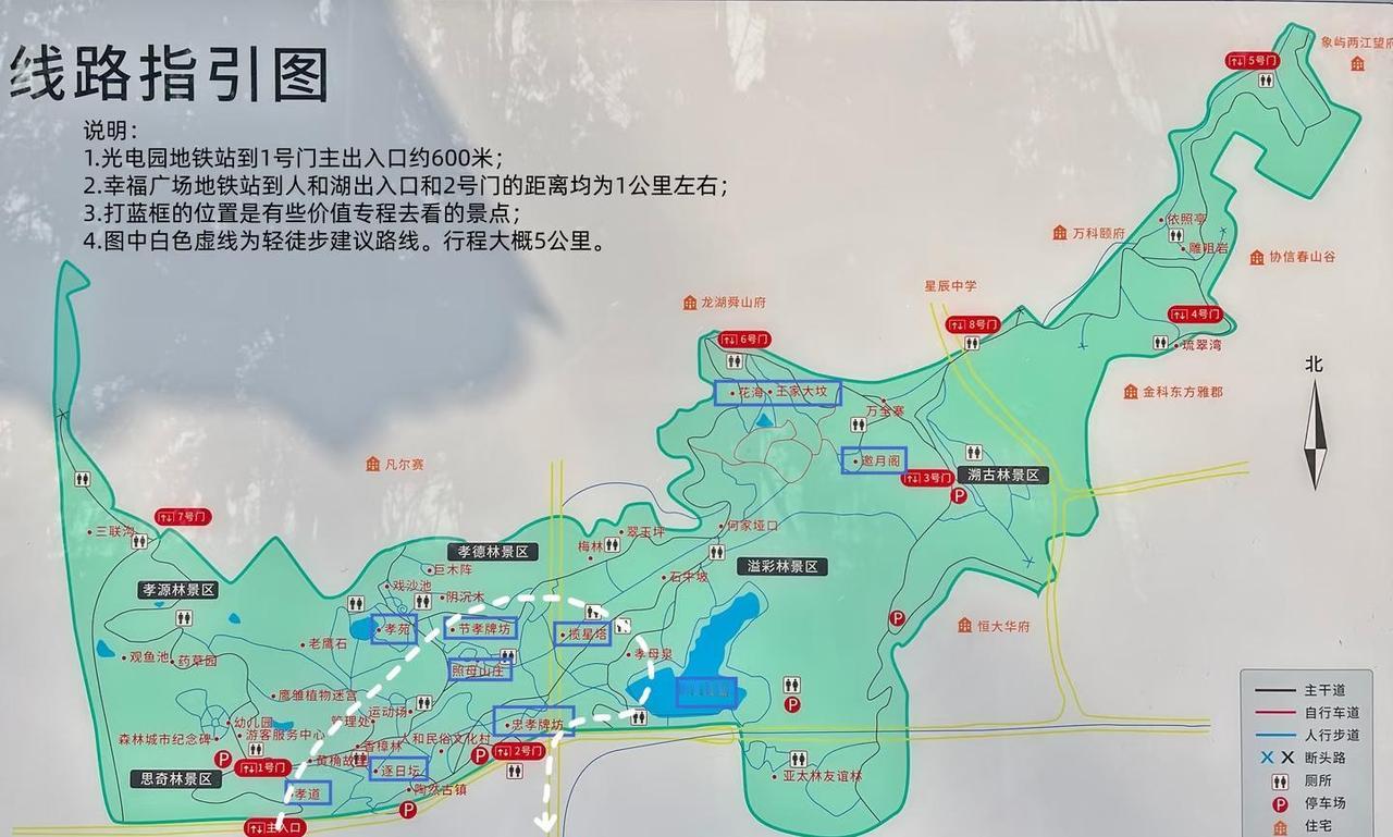 阳光正好,适合上照母山徒步 照母山 横在两江新区中部的一条东西走向小山脉 把主城嘉陵江以北区域自然分成了南片区和北片区 于是,两江新区的人爬照母山都挺方便。 登顶照母山揽星塔 可远眺南北两个方向的两江新区城市风光 特别是两江幸福广场就近在脚下 “世界第一扭”高科太阳座大楼和方碑近在眼前 阳光正好的时节 不冷不热 春花初放 正好可以上照母山徒步 难度不大 男女老少皆宜。 山上道路多 可视个人时间和体力自由安排订制路线 可长可短 可难可易。 个人实测 走个精华景点线路5公里比较合适(如线路图中白色虚线所示) 据资料显示 “照母山”之名是2001年公园建设时才正式定名的 说明此山没有什么历史文化遗迹 主要以健身、看景、呼吸新鲜空气为主 建设照母山森林公园时 以南宋状元冯时行结庐照母的孝道传说为主线 突出孝文化主题 围绕中华 “孝”传统 在山上建了 照母山庄 孝道 孝苑 孝母泉 慈孝阁等等 2003 年 将人和吉乐村清岗堡的“忠孝牌坊”(一位清代七品县令为其母亲修建的坟前石坊)搬迁至照母山公园2号门附近 2012年 将鸳鸯街道牌坊村四社的“鸳鸯节孝牌坊”(清道光年间为表彰王聂氏守节育子而建)搬迁至照母山公园照母山庄前 2017年 将天宫殿街道双碑村的“王家大坟”(主人是清末四品大员名王慎德)搬迁到照母山公园六号门 算是给公园增添了三个文物古迹吧。 节孝牌坊可以顺道看看 其他两个专程走去看的意义不大 题外话—— 搬迁、迁建文物古迹的情况在重庆特别多 其他省市更多的是在原址折腾 补充: 南宋状元冯时行结庐照母传说: 南宋, “巴渝第一状元”冯时行,遭秦桧陷害,被贬到了黎州做地方官。 赴任途经重庆大竹林时,母亲重病,三个月不见好。 冯妻留下照顾冯母,冯继续前往赴任。 不久冯母去世,冯妻守护墓地三年。 1159年,宋高宗批准冯时行回乡守孝。冯时行日夜照墓守孝三年,还写了一些文章,忧国忧民,不忘老母养育之恩。 于是,后人称此山为“照墓山”“照磨山”“赵墓山”“赵母山”等等 2001年正式定名“照母山”。 另外: 山下幸福广场坐地铁必经 宽阔的广场 超大的喷泉 高科太阳座大楼 方碑 百林公园 都值得顺道耍一下 重庆 citywalk 城市轻徒步 森林公园