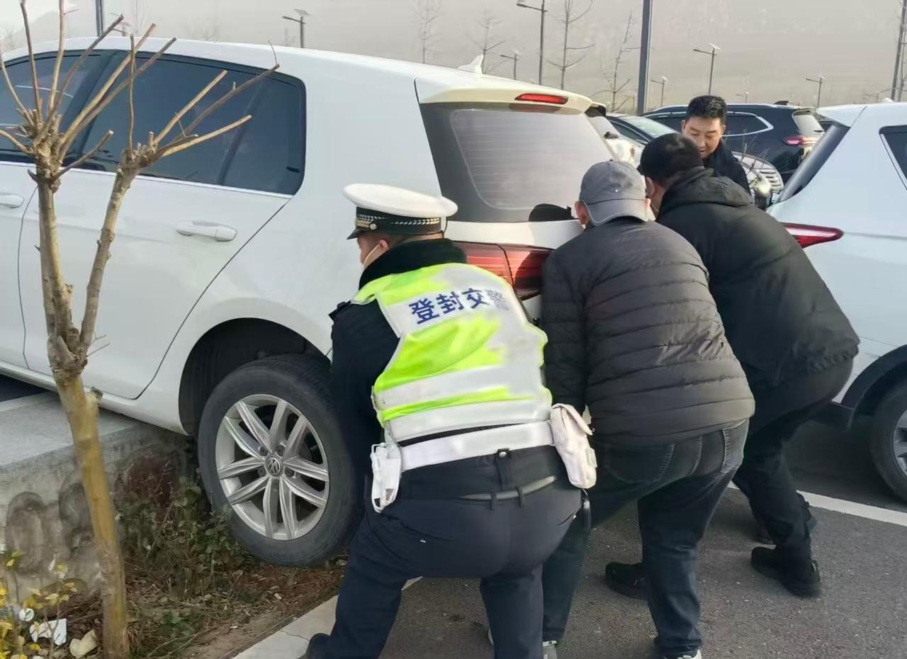 【游客倒车遇困 登封交警暖心解围】2月22日,登封交警接群众求助:一辆私家车倒车时后轮悬空,无法移动。民警立即赶赴现场,联合热心游客合力将车辆抬起复位,短短几分钟化解困境,消除安全隐患。郑州交警提醒 景区停车请谨慎驾驶,遇紧急情况可随时向交警求助。