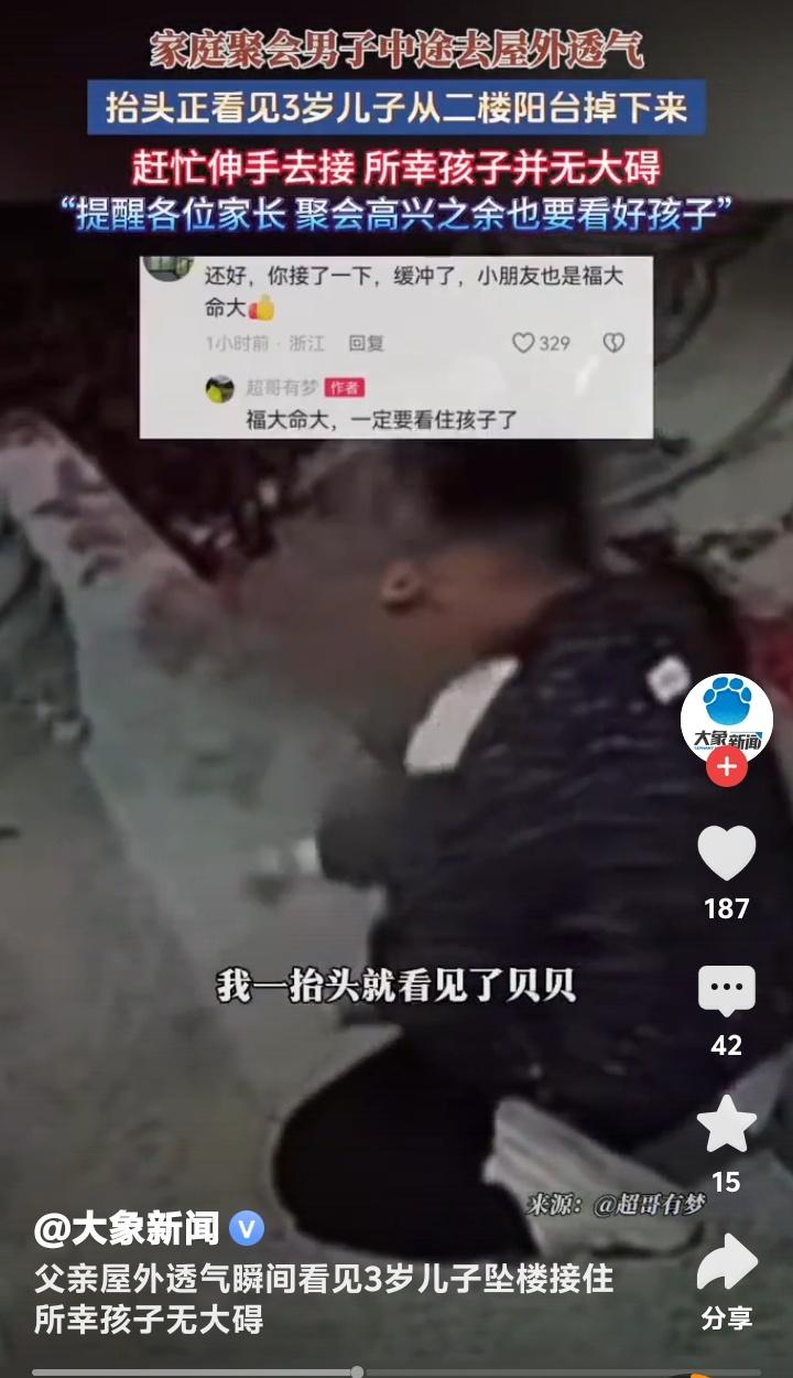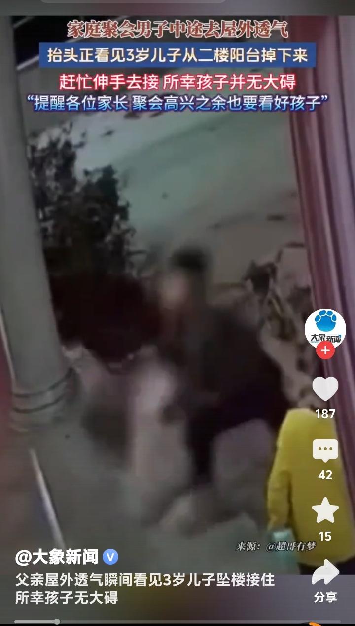 广东惊魂3秒!父亲聚会中途离席透气,抬头竟见3岁幼子从二楼阳台坠落,本能一接改写