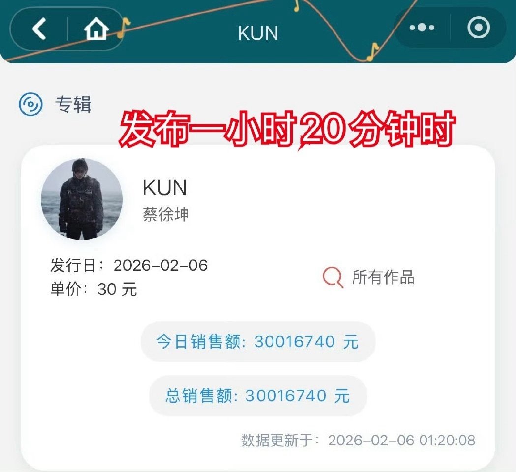 蔡徐坤新专辑15分钟就打破限购后数专首日(2500w)记录首日更是迈入4000w,现在才发布两周多就即将5200w了tme已经连续四次把蔡徐坤放入财报里了这又是谁的一辈子