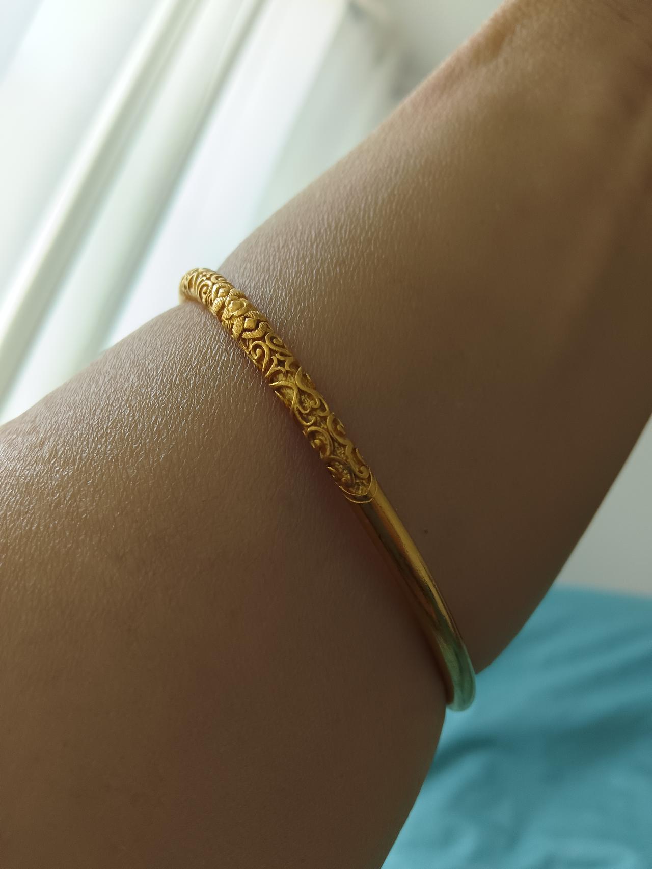 她们手上戴的金镯子金戒指, 直接戳痛了我的心。 去年的四月份, 我本该也有一个大金镯, 一个大戒指,一个小手链。 只因为一时的冲动, 那时以780元/一克的价格卖掉了。 当时以为金价后续会掉下来, 好以低价重新买入新款首饰, 没曾想到后来金价就一直猛涨。 去年几次都想出手买点点回来, 却一而再再而三地犹豫着没买。 直到今天正月初六, 也是我大家庭团聚的好日子。 酒桌上看着小姑小婶子, 外甥女外甥媳妇她们, 站起来伸手给我家婆举杯敬酒, 个个亮出了那金光闪闪的镯子时。 我心里五味杂陈, 才下定决心, 不管多贵也要去买个金镯回来, 否则心里就像压着一块大石头, 沉甸甸的难受。 于是吃过午饭, 我带着手机开着车, 到镇上以1180元/克的价格, 买了一个31克的卷草纹手圈回来。 说实话, 不心疼是假的, 毕竟比之前的卖价快贵一倍。 家人们! 有跟我同款把金子卖掉的吗? 有跟我同款已后悔当初的吗? 有跟我同款重新入手买的吗?[捂脸] [作揖][作揖][比心][比心][招财进宝][招财进宝][福][呲牙] 黄金镯子 买金镯子 黄金金镯子 大金手镯