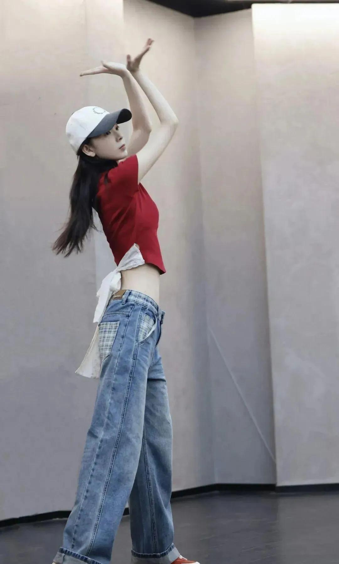 春晚练舞花絮里,红色短款上衣+牛仔裤,直接把腰细到离谱,连我一个女生都看呆了!