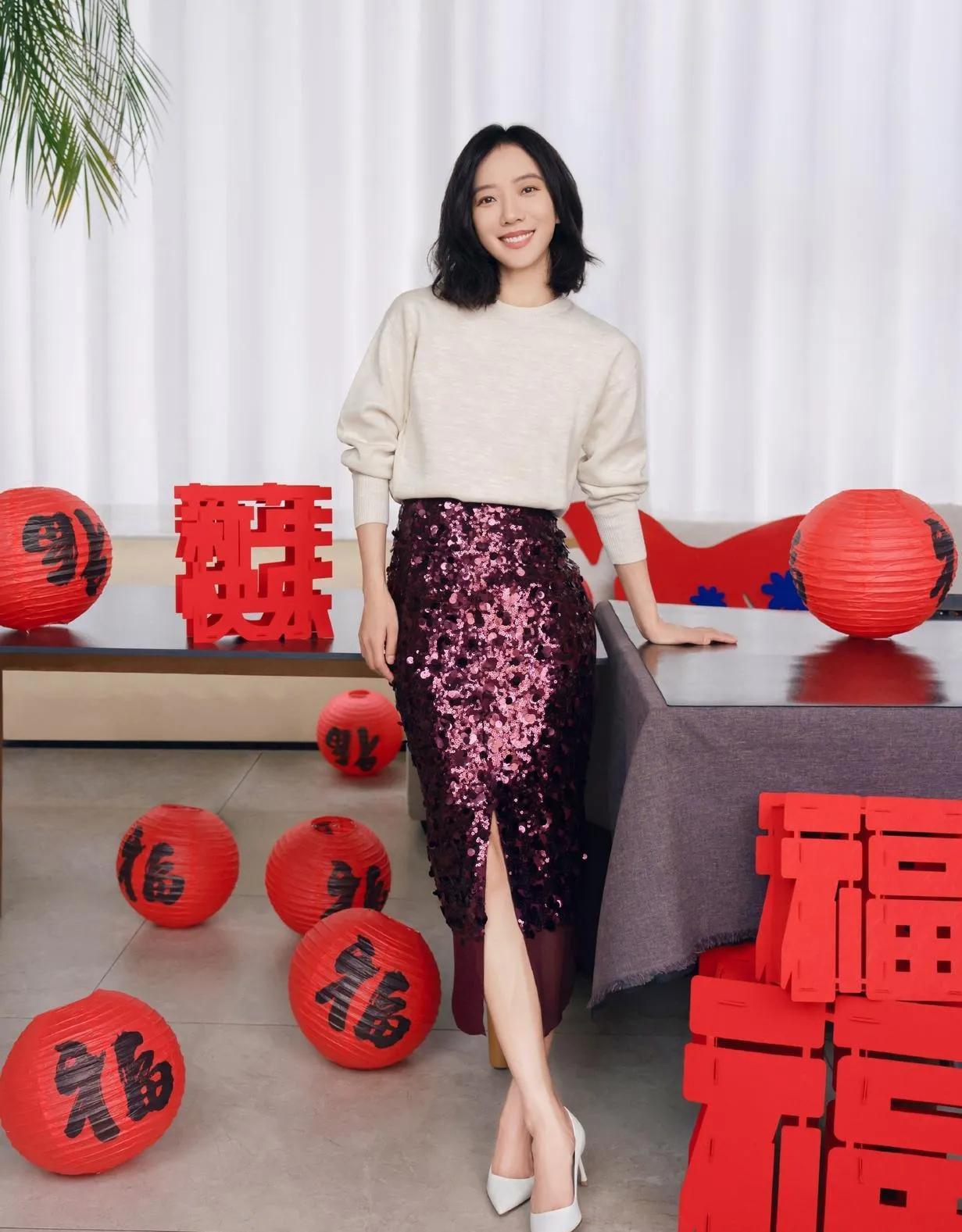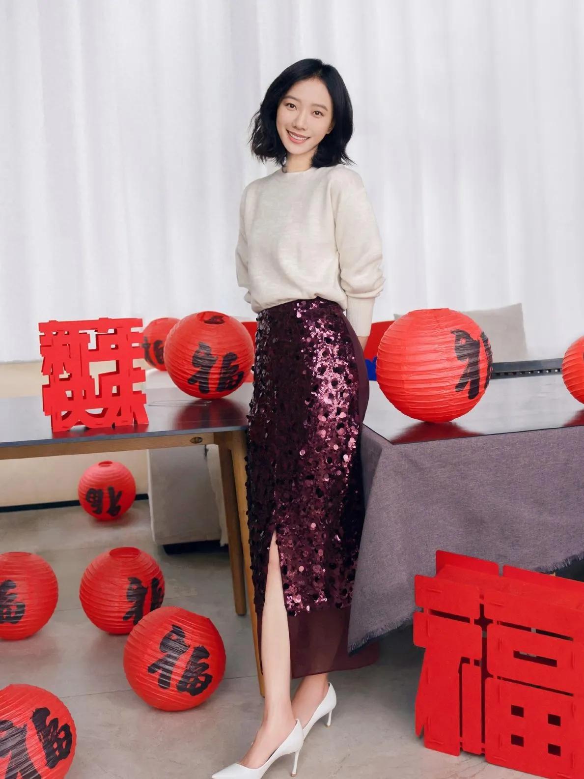 王珞丹的新年装扮气质真的绝了!✨新年聚会这么穿,低调中透着贵气。简约米色毛衣混搭酒红亮片开叉裙,温柔与闪耀碰撞,高级感拉满。