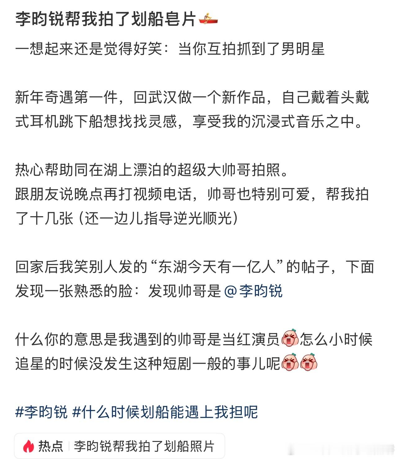我去人家划船遇到了李昀锐,而且李昀锐还帮她拍了照片(live图里有小林的声音),这大过年的也不怕我气到哪