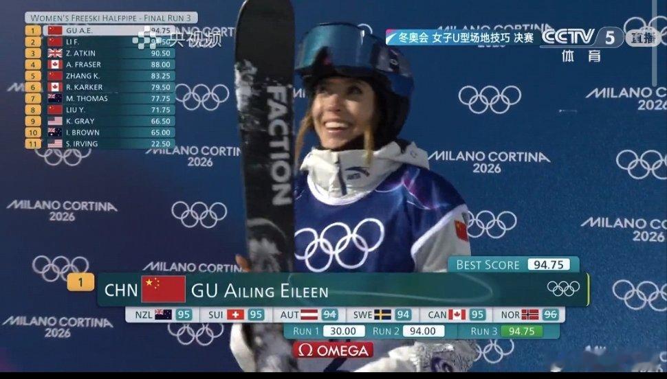 谷爱凌第三滑94.75分谷爱凌高难动作锁定金牌全力冲击高难度,整套动作行云流水,完美收官!谷爱凌第三滑再献神级表现,拿下94.75分,用绝对实力锁定金牌,王者归来!三轮封神,实力统治,青蛙公主太牛了