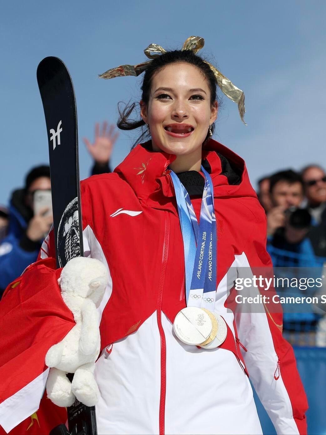 谷爱凌美美扎个蝴蝶结太可爱了!谷爱凌第三滑94.75分
