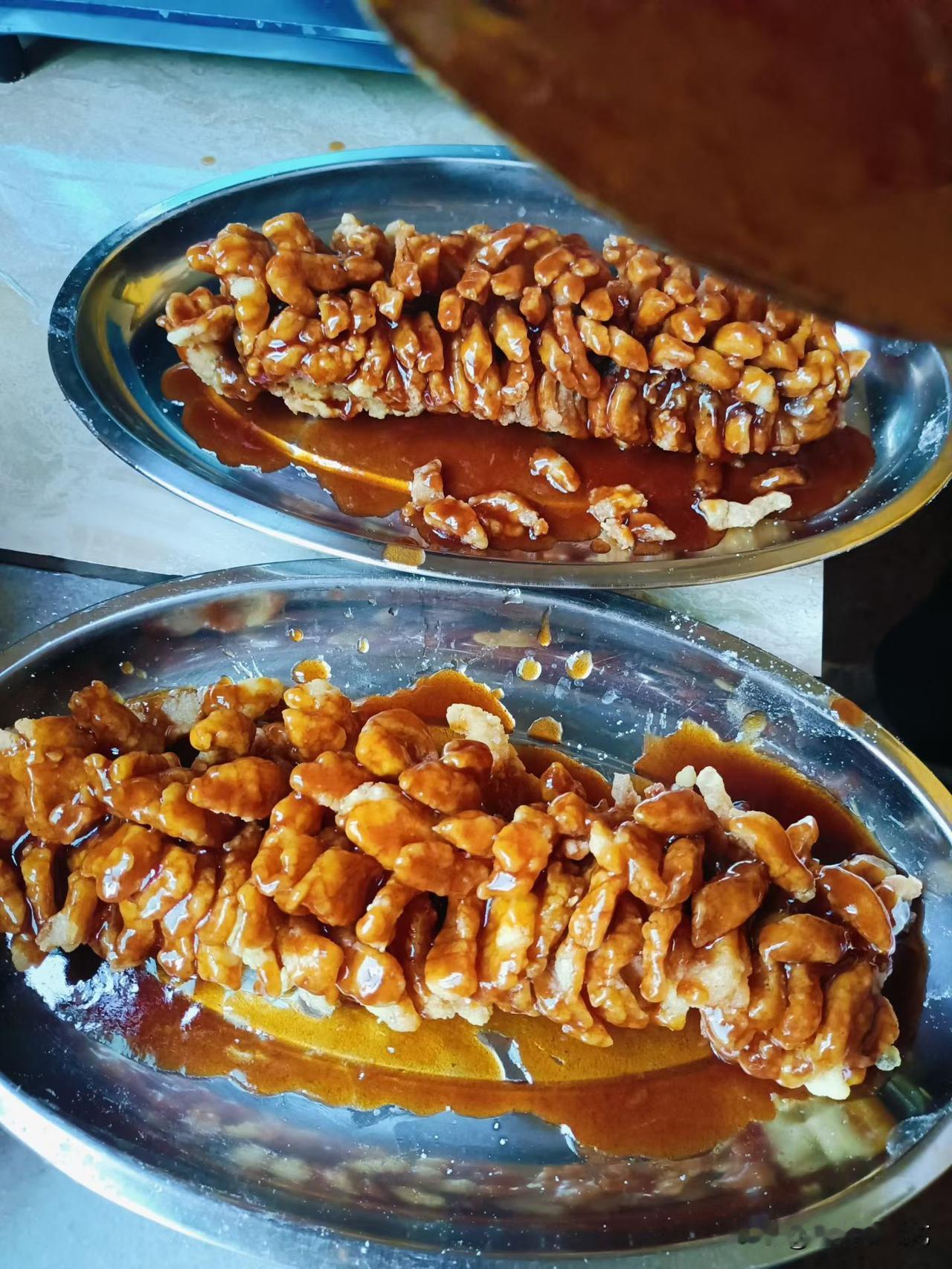 天南地北大拜年糖衣裹满核桃,琥珀色糖浆泛着亮泽,淌在盘边黏出甜香。焦脆裹着绵润,刚出锅的热意浸着甜糯,把烟火的暖揉进这道甜口小点里。