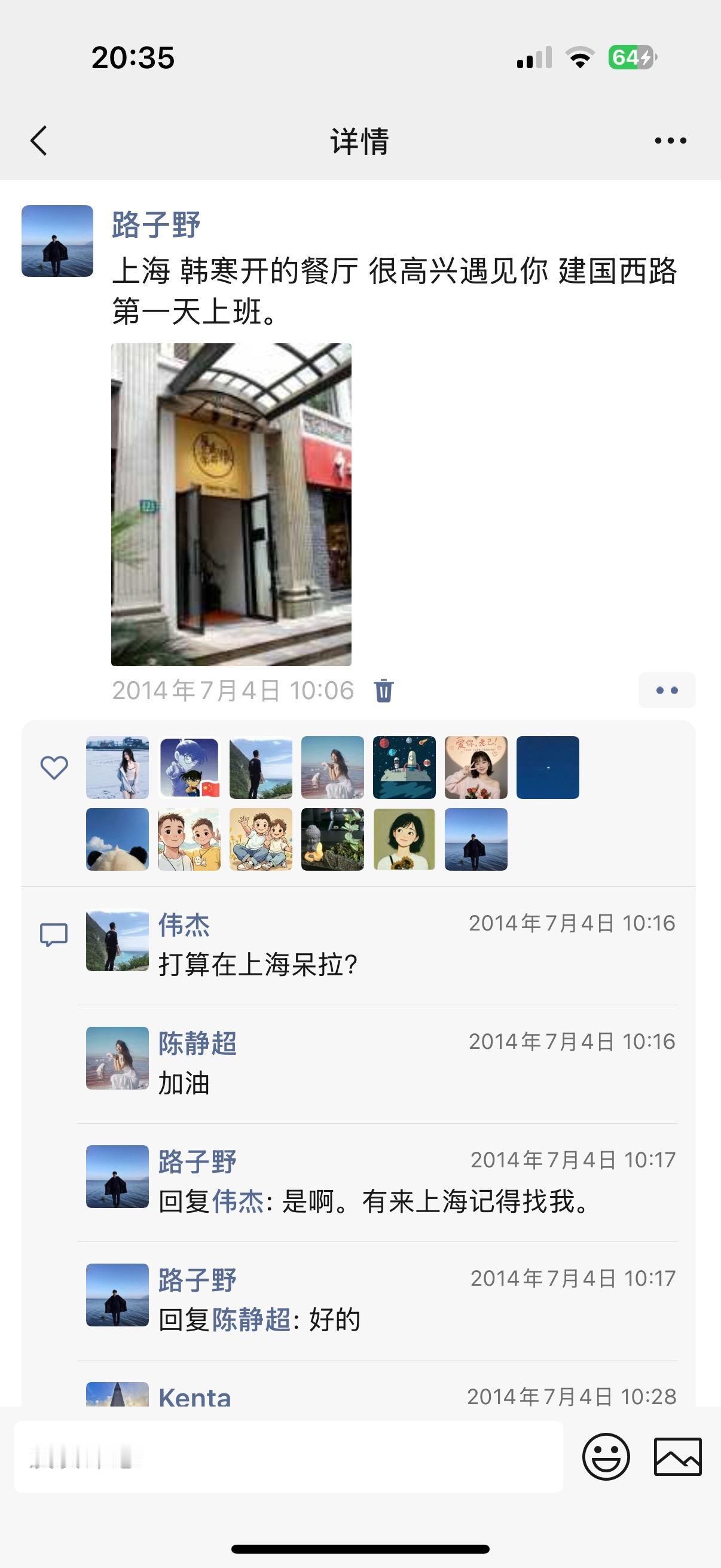 喜欢韩寒很多年了,从初中开始看他的书,后来才知道他也是赛车手,直到2014年,我鼓起勇气去给韩寒的餐厅投了简历,于是在上海有了一份工作,虽然在餐厅没有偶遇到韩寒,但是在他导演的第一部电影《后会无期》见面会终于见到了,而且在楼下还再次碰见,由于行程太匆忙,没能与韩寒合影,只有留下了一个背影,12年过去了,还是没有机会见到韩寒,不知道下次见面会是什么时候,最后提前庆祝《飞驰人生3》票房冠军!韩寒