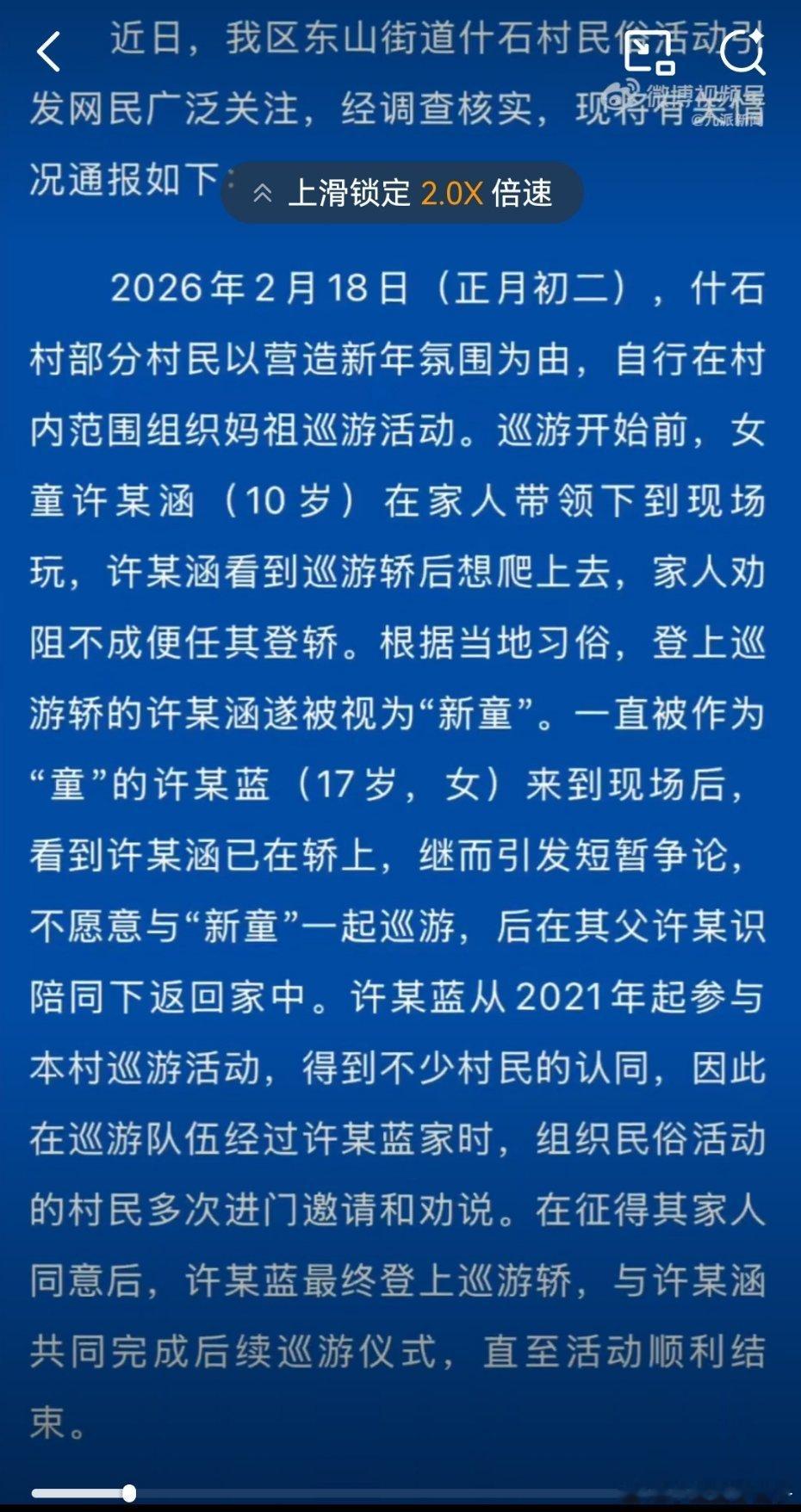 官方通报网传妈祖巡游换童事件官方通报来了,没有说的自己掏了多少钱,人家那个孩子是个小女孩不是男孩