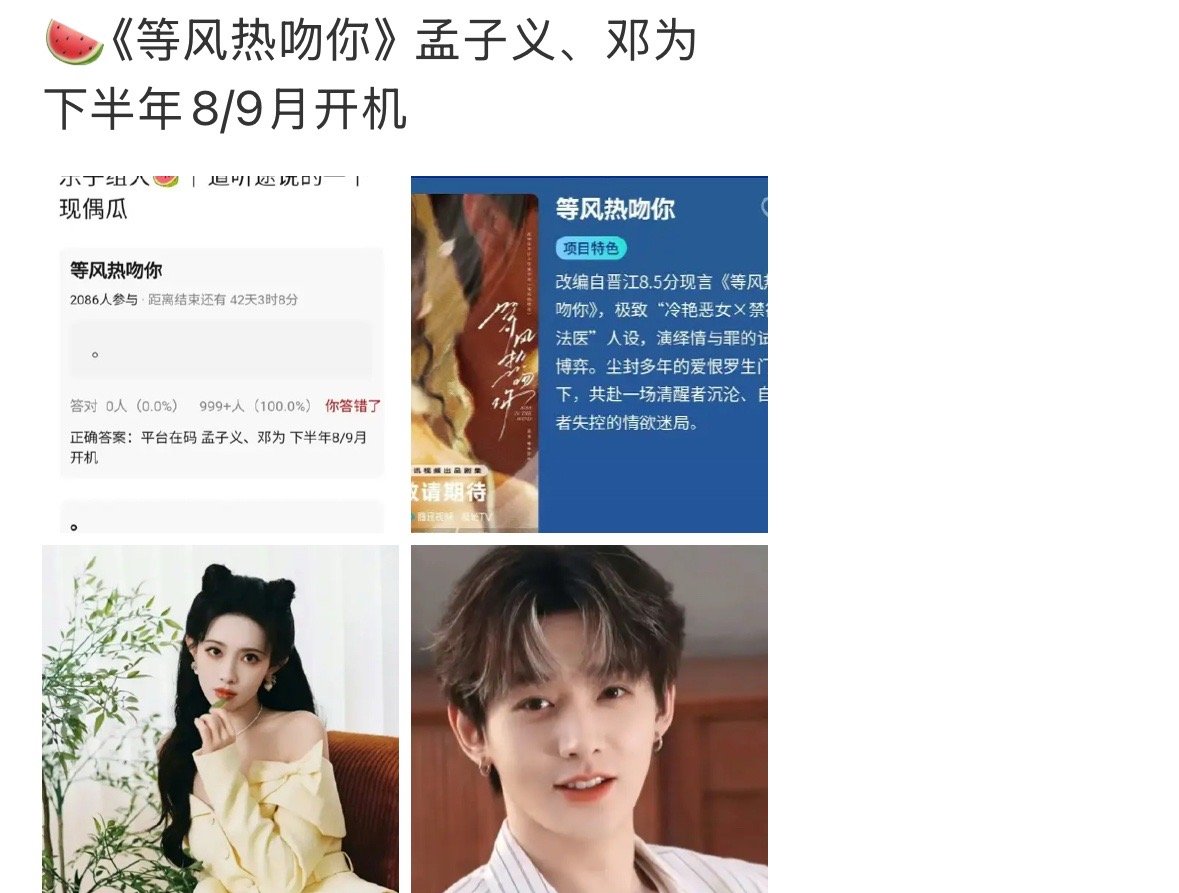 等风热吻你这个🍉有点意思女主都是传的孟子义,男主传了邓为 李昀锐 丁禹兮,且都在孟子义名字后面。可能吗