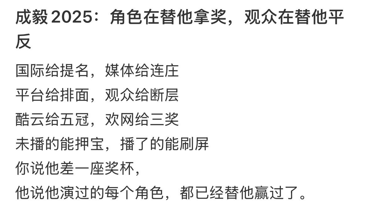 刷到一篇很好的总结文章~《成毅2025:角色在替他拿奖,观众在替他平反》