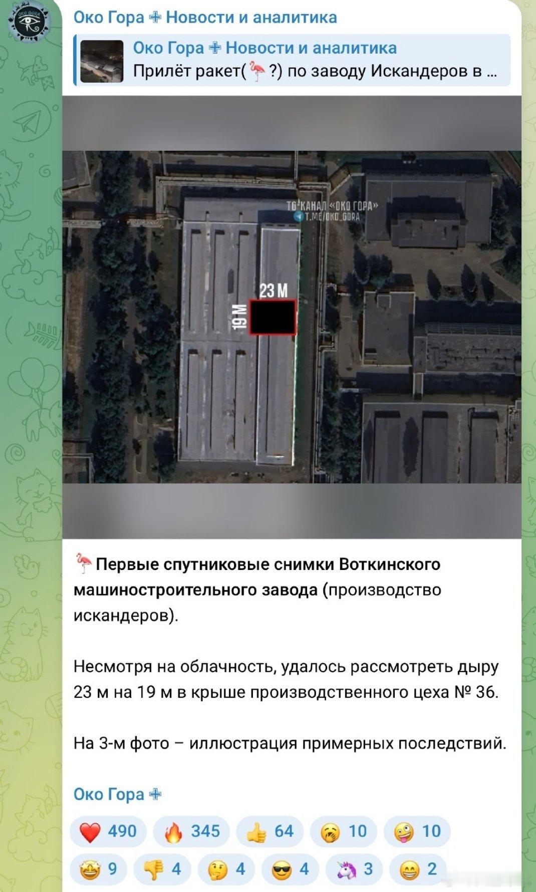 电报频道“荷鲁斯之眼” 放出了乌军“火烈鸟”导弹打击俄境内沃特金斯克机器制造厂前后的卫星影像。根据模糊的卫星图片初步分析,该厂36号生产车间(弹道导弹总装车间)的房顶开了一个23×19米的大窟窿。 关注俄乌局势最新进展俄乌冲突专家解析俄乌冲突四年为何停不下来