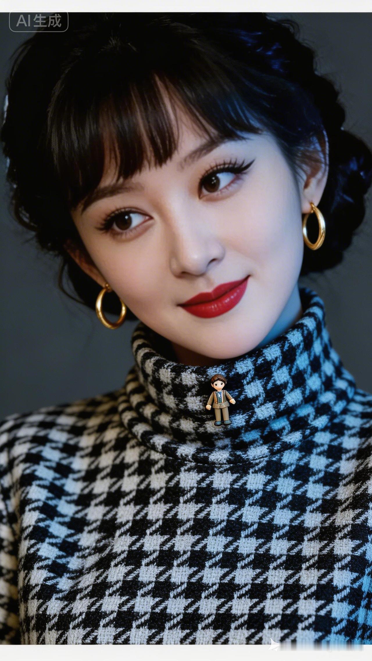 复古格纹毛衣,搭配大耳环,复古又时尚!