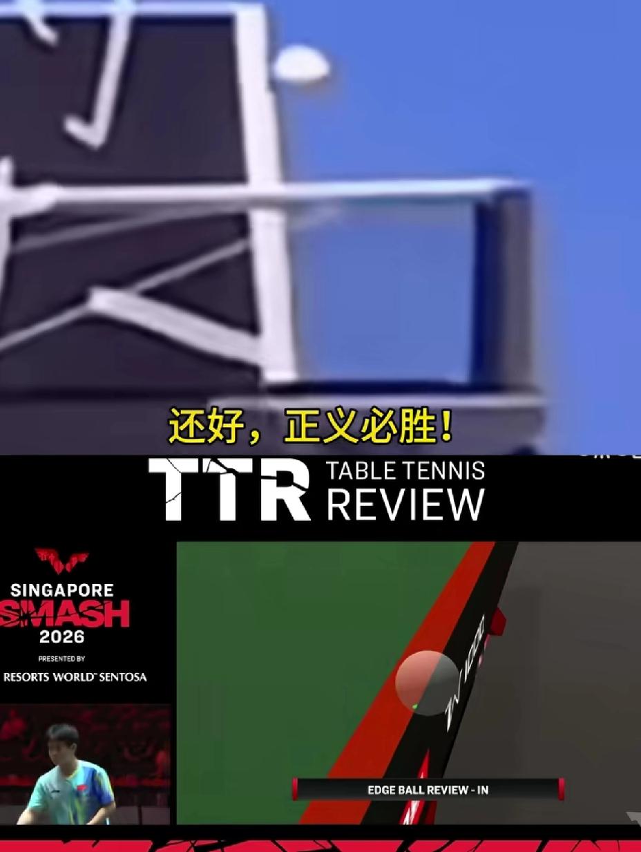 历史总是惊人的相似, 不管什么事总有真相大白的时候, 感谢小石头的一个擦边球, 更进一步证明了莎莎亚洲杯那个争议球。 新加坡大满贯林诗栋对战筿冢大登, 其中一个擦边球, 跟亚洲杯莎莎那个擦边惊人的相似。 小石头挑战鹰眼, 显示擦边。 小石头这个完全复制了莎莎的球, 几乎一模一样, 所以时间会证明一切, 更显示了莎莎的格局! 也更验证了那句话, 不是莎莎的分, 她一分也不会要。 是莎莎的分, 一分也要不回来。 虽然要不回来, 但是这可能是天意, 这场给了上场答案。 所以历史重演一遍, 证明了一些事, 也证明了一些人。 真相虽迟但很给力, 感谢林诗栋为他莎莎证明, 冥冥之中自有天意。 (图片源自于网络)