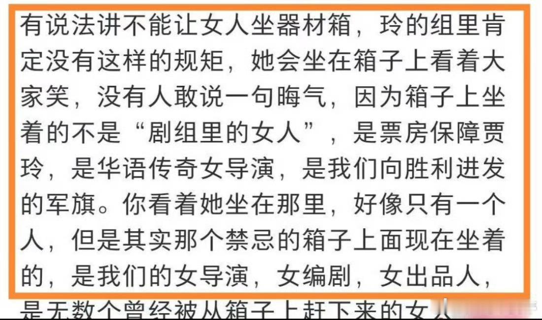 贾玲剧组 女演员可以坐箱子要么都别坐,要么都可以坐有些带偏见的糟粕从现在开始改改吧
