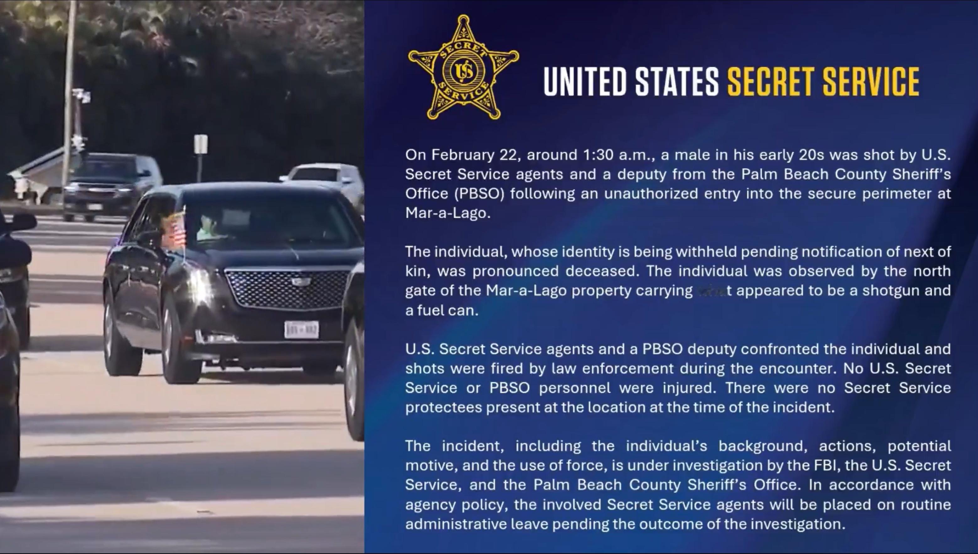一男子试图闯入美国海湖庄园被击毙美国特勤局表示被击毙的男子疑似携带了霰弹枪和燃烧罐