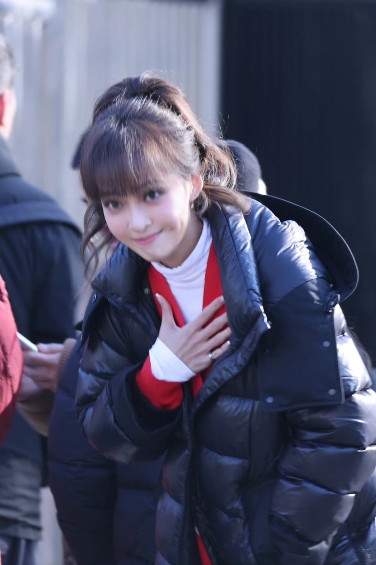 张天爱跟素人合影,胯真的好宽,大宅院似的