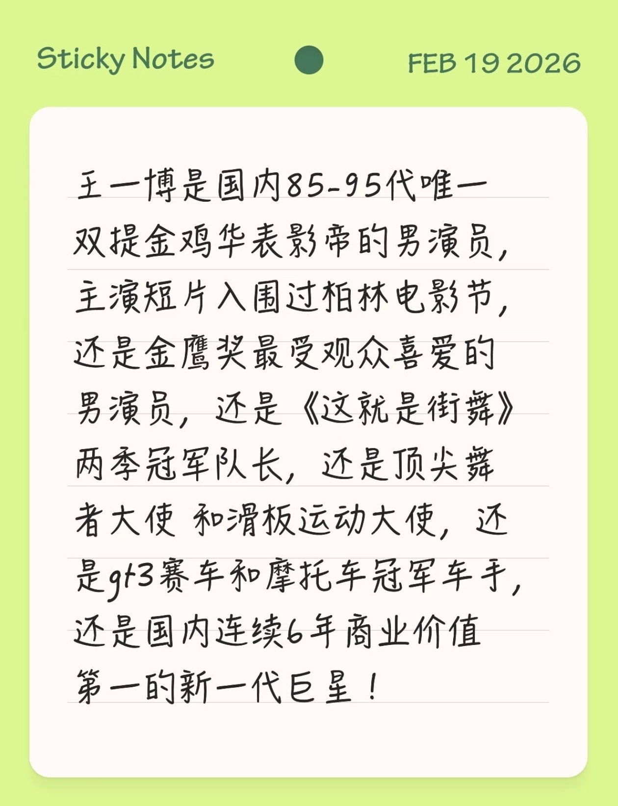 从荧幕到赛道,从舞台到赛场——他用热爱打破边界,用实力定义全能。说话,服不服?王一博