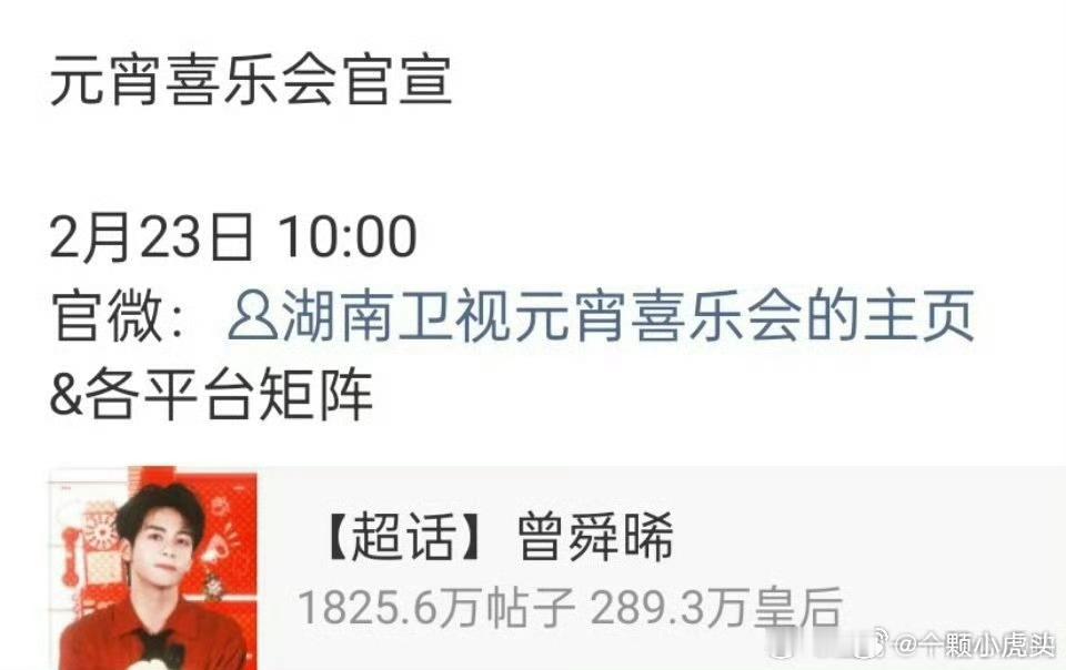 曾舜晞湖南卫视元宵喜乐会预热啦!会不会唱浆果?好期待👏